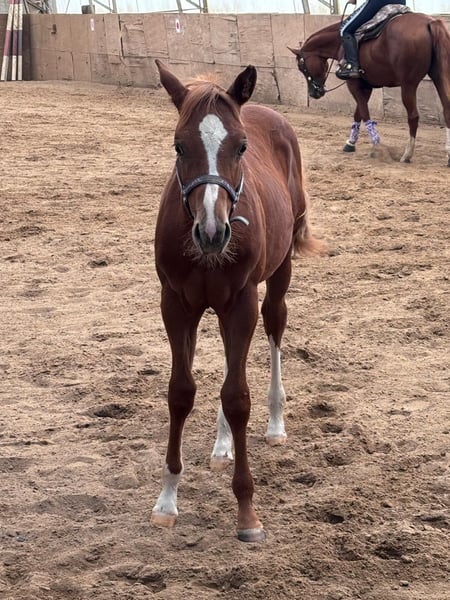 Hot Nite Invitation - ein bildhübscher Quarter Horse Hengst, geboren am 13. März 2025. Mit seiner eleganten sorrel-Farbe, seinem korrekten Gebäude und der harmonischen Bemuskelung ist er ein echter Blickfang. Er wird voraussichtlich ein Endmaß von etwa 160 cm erreichen und damit später auch größere Reiter gut abdecken können. Seine AQHA-Papiere liegen bereits vor. Dieser junge Hengst wächst artgerecht im Herdenverband auf und kennt sowohl Paddock-Box als auch Weide. Er ist altersentsprechend geimpft, regelmäßig entwurmt und an Tierarzt sowie Hufschmied gewöhnt. Hot Nite Invitation zeigt sich stets brav, ruhig und gelassen, dabei aber aufmerksam, lernfreudig und charakterstark. Sein menschenbezogener, lieber Charakter macht den täglichen Umgang mit Rocky zu einer Freude. Auch unter Bewegungsaspekten weiß dieser Youngster zu überzeugen: Er zeigt bereits jetzt schöne, taktreine Grundgangarten und bringt das Potenzial für eine erfolgreiche Laufbahn im Sport oder auf Turnieren mit. Dank seiner erstklassigen Pleasure- und Allround-Abstammung (Hotroddin Invitation x Nite Chip) eignet er sich ebenso hervorragend als zuverlässiger Freizeitpartner. Hot Nite Invitation ist DQHA Futurity startberechtigt, kennt das Fohlen-ABC und ist selbstverständlich halfterführig. Mit seinem hervorragenden Exterieur, seinem angenehmen Wesen und seinem vielseitigen Talent ist er ein echtes Versprechen für die Zukunft - ganz gleich, ob als Showpferd oder treuer Freizeitkamerad. Kann gerne zur Aufzucht bleiben.