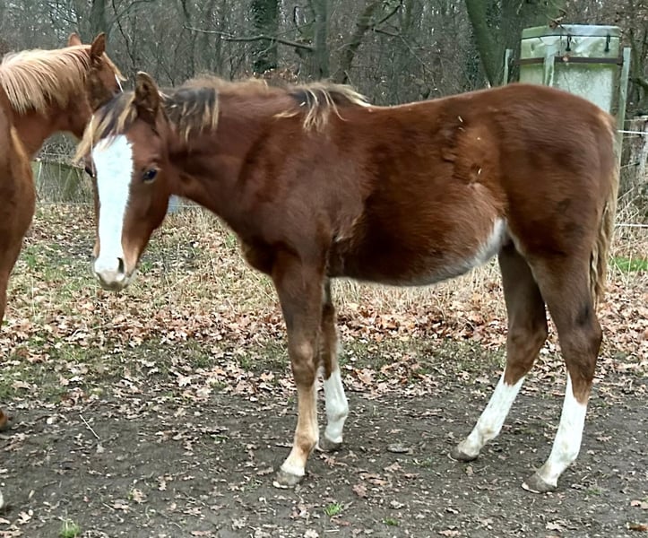 Schönes und gelassenes Quarter Horse Hengstfohlen von Shiners Voodoo aus einer direkten Gunnatrashya Stute! Über die Eltern 6 Panel N/N! NRHA Germany eingezahlt. Er hat die Traumfarbe Chestnut und einen unerschrockenen und lieben Charakter! Standort Wolfsburg! Kann gerne zur weiteren Aufzucht bleiben!