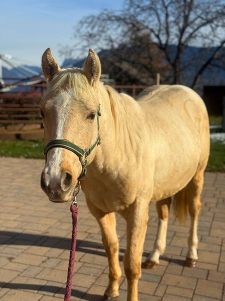 ⚜️ HH Golden Leap Day ⚜️ Wunderschöner Palomino Junghengst (geb. Februar 2024) aus erstklassiger Abstammung sucht seinen Menschen! Ein äußerst freundlicher, charismatischer 2-jähriger Hengst mit viel Ausdruck, Lauffreude und Arbeitswillen. Er überzeugt nicht nur durch seine Optik, sondern auch durch seinen ausgeglichenen, menschenbezogenen ruhigen Charakter. Wunderschöne Blesse, typvoller Körperbau, lange Mähne. 🐴 Aufzucht & Wesen ✔️ Artgerechte Aufzucht im Herdenverband – direkt vom Züchter ✔️ Sommermonate auf der Alm ✔️ Täglicher Umgang, wird regelmäßig von Kindern geputzt ✔️ Sehr verschmust und brav im Handling ✔️ Kennt die Führanlage 💉 Gesundheit & Betreuung ✔️ Beide Eltern 5-Panel n/n getestet ✔️ Regelmäßig entwurmt und geimpft ✔️ Beim Hufschmied vorgestellt (barhuf) 🎓 Ausbildungsstand ✔️ Kennt Longieren in allen Gangarten ✔️ Sattel bereits bekannt, lernt nun auch Trense kennen ➡️ Weitere schonende Ausbildung ab Sommer 2026 geplant ➡️ Preis steigt mit weiterer Ausbildung ➡️ Kann auf Wunsch gelegt werden 📍 Standort: Raum Bozen, Südtirol (Italien) 👉 Ein vielversprechender Nachwuchshengst für Sport oder Freizeit mit bester Basis und tollem Charakter. Bei Interesse gerne auch Mail an amelie.liegl@gmail.com