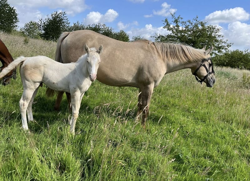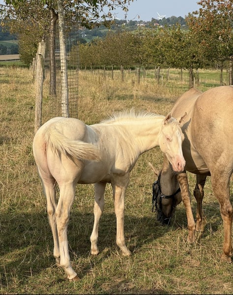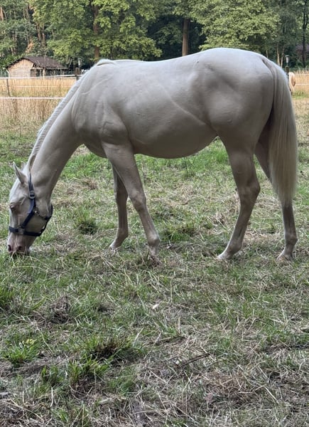 Rw Magnetic Whiz (Reinart) is now 18 months old and is a beautiful perlino with lovely white feet and blue eyes, a gorgeous athletic stallion with superb bloodlines for reining. He has a very calm and cool temperament, is not easily impressed, can be loaded into a trailer, and can be handled by hand. He is very well-trained and has no stallion behavior whatsoever. He is also very well-behaved with other horses. He has been fully vaccinated and dewormed and has always been to the farrier on time. The last two photos are of his sire and dam. He is a very nice sport horse with a promising future in reining.