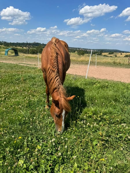 SW At Cody Be Chic - dieser niedliche QH Hengst, 5.24 geboren mit einem geschätzten Endmaß von 156 cm, sucht ein förderndes Zuhause. Cody vereint die besten Reining Linien mit den besten Allround Linien. Väterlicherseits hat er Hollywood Dunit/Smart Chic Olena im Pedigree, mütterlicherseits Invitation Only/Sonny Dee Bar. Der Hengst ist ein ganz neugieriger, ausgeglichener Kerl, der gerne gekuschelt werden will und mit seinen Kumpels spielt. Cody wächst im Offenstall mit Gleichaltrigen auf. Ist gut gebaut, gesund und 6-Panel n/n. Er kennt das Fohlen ABC, ist halfterführig sowie brav beim Hufschmied und Tierarzt. Cody ist offen für alle Disziplinen. Wird unterm Sattel sicherlich mal ein ganz toller Begleiter, egal ob Turnier oder in der Freizeit.