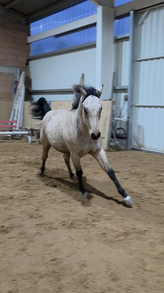 Feet in White Socks, ook wel Bailey genoemd, is geboren op 26-04-2024 en een zeer elegante en vooral brave American Quarter Horse hengst. Bailey beschikt over volledige papieren. Zijn vader: FOOTYS FINEST STEP Zijn moeder: JOSIES GOLDEN FROST Beide ouders zijn getest op 7-panel n/n. Dankzij zijn uitstekende pedigree is hij zowel voor de fokkerij als voor wedstrijden zeer interessant. De kleine vent heeft karakter, uitstraling en zijn lichaam is om op te smelten. Op ongeveer 9 maanden leeftijd is hij voorzichtig weggedaan, momenteel groeit hij samen met een leeftijdsgenoot en een 4-jarige in een vrije groep. Bailey is een echte bewegingstalent in alle drie de gangarten. Hij is zelfverzekerd, zeer mensgericht en sociaal ten opzichte van andere paarden. Hij kent het rijden met de trailer, het aan de longeerlijn lopen, is braaf bij de smid, absoluut onbevreesd, houdt van wandelen, knuffelen en ontdekken. Hij is kerngezond, regelmatig ontwormd, voorgesteld aan de hoefsmid, zijn tanden zijn gecontroleerd en hij is gevaccineerd tegen tetanus. De fokker is nog steeds in contact, en hier kan ook contact gelegd worden voor de nieuwe eigenaar. Het is geen noodgeval om te verkopen!!! Voor meer informatie graag in een persoonlijk gesprek. Bailey is gevaccineerd tegen tetanus, regelmatig ontwormd en voorgesteld aan de hoefsmid. Ook is de tandarts langs geweest, die vanwege zijn leeftijd nog niets hoefde te doen, maar wij laten al onze paarden regelmatig controleren en indien nodig behandelen. Kom gerust kijken, verliefd worden... Prijs volgens de kwaliteit.