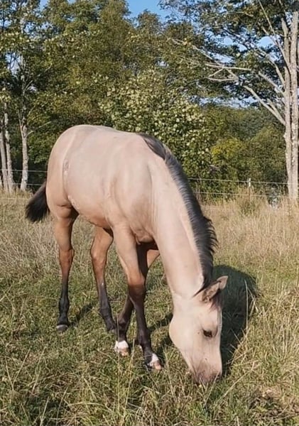 Feet in White Socks, also known as Bailey, was born on April 26, 2024, and is a very handsome and, most importantly, well-behaved American Quarter Horse stallion. Bailey has full registration papers. His sire: FOOTYS FINEST STEP His dam: JOSIES GOLDEN FROST Both parents are tested n/n for the 7-panel genetic test. Thanks to his excellent pedigree, he is very interesting both for breeding and for competition. This little gentleman has character, expression, and a body that melts hearts. At around 9 months old, he was gently weaned and is currently growing up in a pasture with his peer and a 4-year-old horse. Bailey is an extraordinary mover in all three gaits. He is confident, extremely attentive to humans, and very social with other horses. He is accustomed to trailer loading, being tied up, and is well-behaved at the blacksmith’s. He is completely fearless, loves going for walks, cuddling, and exploring. He is in excellent health, regularly dewormed, presented to the farrier, with teeth also checked, and has been vaccinated against tetanus. There is ongoing contact with the breeder, and arrangements can be made for the new owners to get in touch. This is not an emergency sale!!! Further details gladly provided in a personal conversation. Bailey is vaccinated against tetanus, regularly dewormed, and has been checked by the farrier. The dentist has also examined him; no treatment was necessary due to his age, but we ensure all our horses are regularly checked and treated if needed. Come see him, fall in love... Price according to quality.