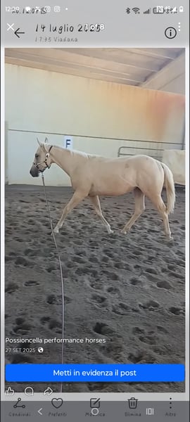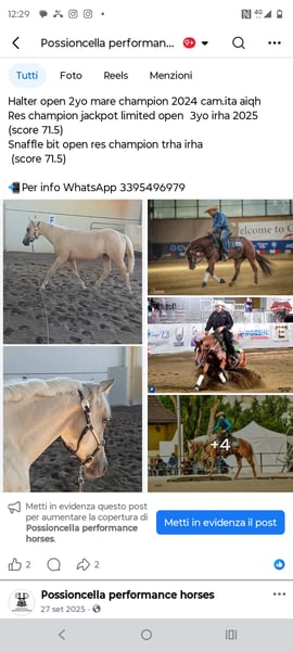 ✨For Sale✨ Futuristic Quarter Horse foal with a large build, 15 months old (born June 2024), bred by Possioncella Performance Horses. 👉 Prospect for Reining, Ranch Riding, All-Around disciplines 🙌 Registered with IRBHA and NRHA 🙌 Custom Ryan x Puro Valentina The dam, Puro Valentina, bred at the Ferrarini QH farm, has produced several foals, including the two attached below: 1) PPH Custom Nike Chic (2021, Palomino mare) – Full sister - Ranch Riding Futurity Champion 2024 - Ranch Riding Derby Champion 2025 - Ranch Trail France Prestige Show Open Reserve Champion 2025 - All-Around Open Champion at the Italian AQHA Championship 2024 2) PPH Shining Serenity (2022, Sorrel mare) – Same dam x Whiz Shining Style - Halter Open 2-Year-Old Mare Champion 2024, Italian AQHA - Res Champion Jackpot Limited Open 3-Year-Olds IRHA 2025 (score 71.5) - Snaffle Bit Open Reserve Champion TRHA IRHA (score 71.5) 📲 For more information, contact via WhatsApp: +39 339 5496979