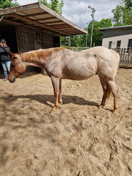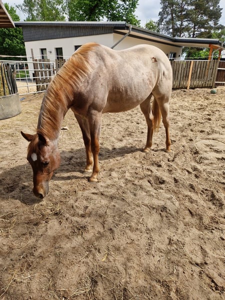 OH Trustfull Power - traumhafter, red roan Quarter Horse Junghengst, 5.2023 geboren mit einem geschätzten Endmaß von 155 bis 160 cm, mit erstklassiger Allroundabstammung und sehr lieben Charakter. Dieses kleine Juwel sucht neue Herausforderung. Der Hengst ist sehr aufgeschlossen, menschenbezogen und lieb im Umgang. Zurzeit steht er auf Sommerweide und darf seine Jugendzeit genießen. Trusty ist halfterführung und kennt alles, was man als Jungspund kennen und können sollte. Er ist gesund und 6-Panel n/n. Wurde mit einer Fohlenprämie ausgezeichnet. Trusty beeindruckt nicht nur durch seine Optik, auch weiß er sich zu bewegen und zeigt Talent für den Allroundbereich. Er ist einer der letzten Nachkomme von Good Impulses, ein Zippos Mr Good Bar Sohn aus einer Hot Impulse Tochter. Trustys Mutter ist eine Doc Chex Brother Tochter. Der Hengst ist ins EWU Jungpferdeprogramm eingezahlt. Trusty ist ein talentiertes Nachwuchspferd, das im Sport als auch als treuer Begleiter überzeugen wird. Ebenso auch zur Zucht interessant.