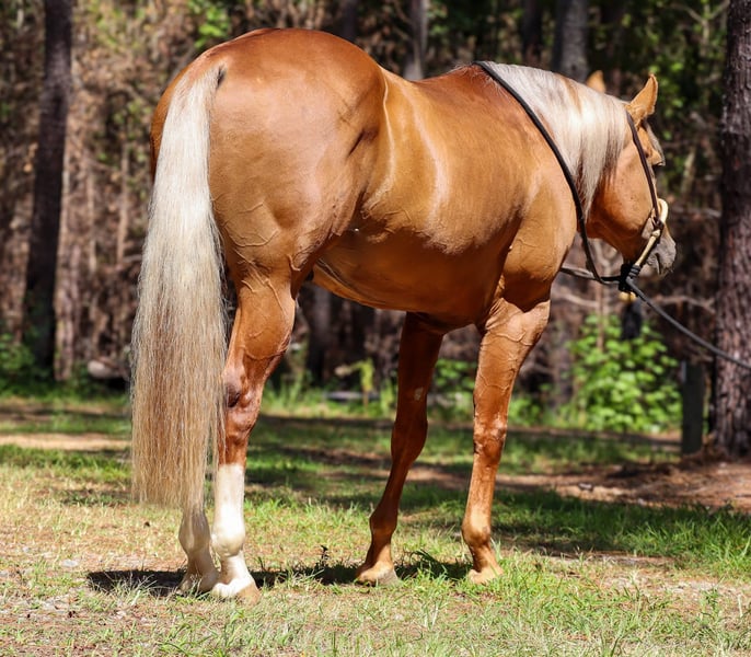 💫 Zippin After Noon 💫 (aka Remington) 2018 15.3hh AQHA Palomino Stallion. Remington is a wonderfully well-mannered boy who is as respectful under saddle as he is on the ground. He has never been bred and is a DREAMBOAT under saddle. Keep the family jewels and continue the legacy or let them go and have one heck of a jaw-dropping and versatile gelding. You don't find too many like this with great bloodlines, temperament, color, size and abilities. He is a massive sweetheart and has the personality of a giant puppy dog. He love affection, runs to meet you and is very personable. This big boy was very lightly started in his younger years and has shown/experienced the show ring since he was just a few months old with his dam. He has recently completed several months of training with us here at the Ranch had has surpassed all of our expectations since he had been sitting for several years. While he is vocal at times on the ground, he becomes very focused and driven when under saddle. In the arena, Remington moves out with beautiful strides and is very eager to please. He has a very smooth rocking chair lope and a gorgeous extended trot. On the trail, he is confident, sure-footed and can go out in groups or branch off for a solo trip. He has a great stop to him, is very responsive to leg pressure and is exceptionally soft in the mouth. We think Remington would be a great prospect for Ranch Riding, Ranch Versatility, Western Pleasure and Trail Riding. Don't miss your chance to own this gorgeous hunk! His price will continue to go up as his training continues. Remington is barefoot and sound. He is UTD on coggins and shots. PPE's welcome at buyers expense. Shipping available at buyers expense up to 200 miles. For questions, videos, pricing or to schedule a test ride, please call/text our trainer, Justin, at (757) 871-3688 Www.tenpointranch.com Tenpointranchnc@gmail.com Located in Hollister, NC, 27844 #TenPointRanch #TenPointPerformance #Stallion #Palomino #WesternPleasure #Stud #PalominoStallion #AQHA #QuarterHorse #QH #QuarterHorseStallion #QHStallion #RanchRiding #TrailRiding #RanchVersatility #PalominoProspect