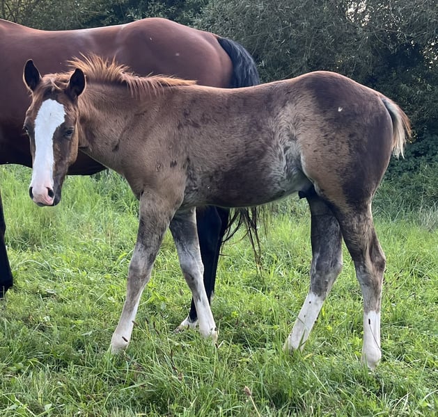 Poulain pp AQHA né en 2025 Panel 5 N/N et ADN testes a travers l’AQHA Régulièrement vermifugé et paré. Grandit en troupeau avec d’autres poulains de son âge et poulinière en extérieur avec abris Origines reining , poulain bien construit qui se déplace bien . Disponible au sevrage d’ici novembre /decembre 2025 N’hésitez pas à nous contacter pour plus de renseignements ————- 2025 AQHA hengstfohlen . Panel und DNA durch AQHA getestet Regelmassig entwurmt und hufpflege Reining Abstamungen. Richtiger eye catcher, gut gebaut . Gerne sich bei mir wenden fur mehr info . Wir sprechen flüssig deutsch und englisch