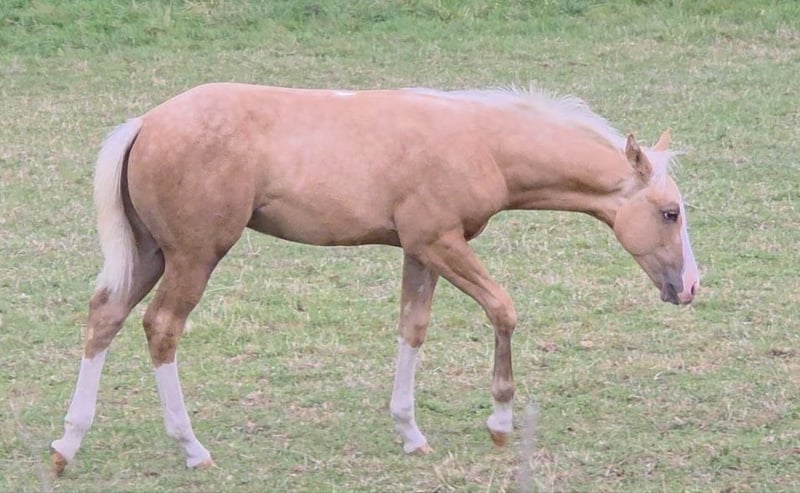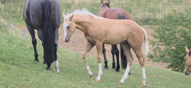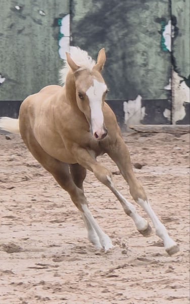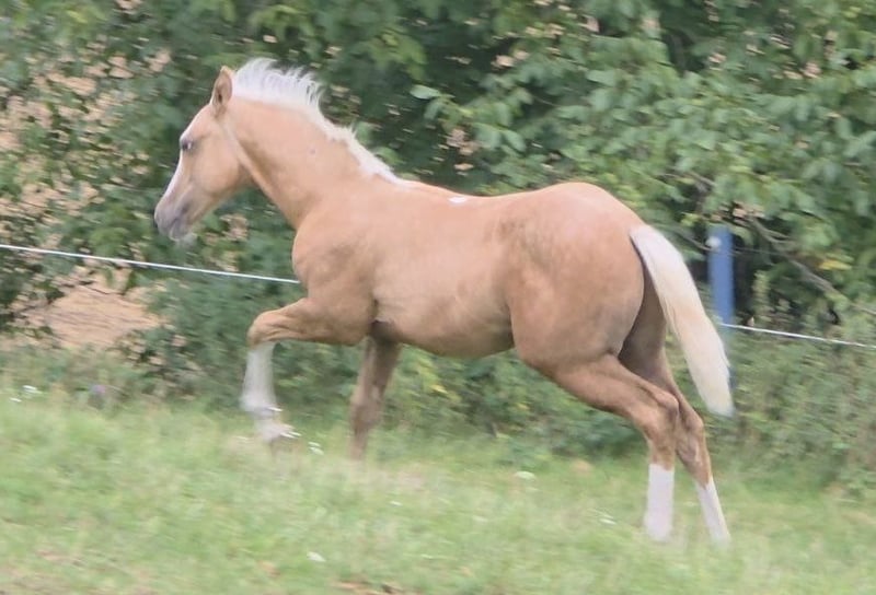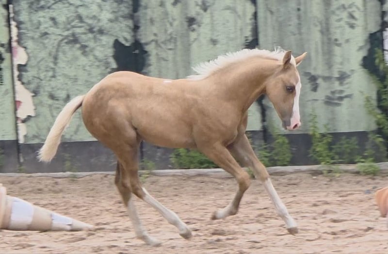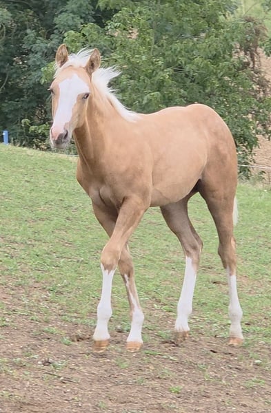 Zum Verkauf steht ein vielversprechender American Quarter Horse Hengst, geboren April 2025. **HES A CAT CHIC OLENA** aka ODIN Genetisch getestet und 6 Panel N/N Dieser wunderschöne Palomino wird vermutlich ein Stockmaß von 150 cm erreichen Er überzeugt uns derzeit durch sein charmantes Wesen und seine ansprechende Statur , korrektes Gebäude und tolle Bewegungen. Wir sehen in ihm klare Ansätze zum Westernsport für ambitionierte Reiter aber auch als Familien Pferd . Ein dem Menschen sehr zugetaner und freundlicher Charakter runden Ihn ab und wir sehen ihn sowohl für erfahrene Reiter als auch für Familien/ Menschen geeignet, die sich einen zuverlässigen Partner wünschen und aufziehen wollen. Er ist gut sozialisiert, kennt den Umgang mit anderen Pferden. Seine Bewegungen sind geschmeidig, schnell , balanciert und kraftvoll, was ihn zu einem idealen Kandidaten für verschiedene Disziplinen im Westernreiten macht. Von seiner Abstammung her könnte er sich auch für die Rinderklassen gut eignen. Ausziehen konnte er ab Ende Oktober COR und Equidenpass sind vorhanden die ersten Tetanus Impfungen zur Grundimmunisierung stehen Ende Oktober an . Er wird tgl gehändelt und kennt Hufpflege. Bei Interesse oder weiteren Fragen stehe ich Ihnen gerne zur Verfügung. Lassen Sie sich diese Gelegenheit nicht entgehen, einen so talentierten jungen Hengst in Ihre Familie aufzunehmen!
