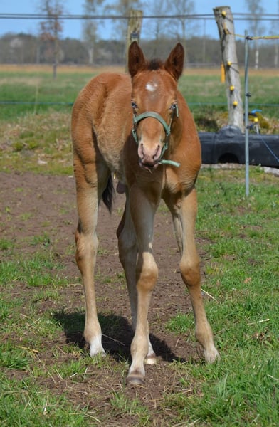 Amber Champagne ruin, een hengstveulen, zal een uiteindelijke stokmaat van ongeveer 1,54 m krijgen.