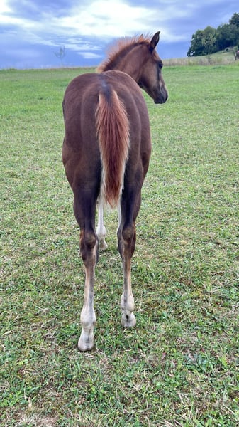 We are looking for the best home for our little one. He is very affectionate and loves to cuddle with people. He is already halter trained, picks up his hooves well, and goes out on trails as a companion horse. He is accustomed to standing tied, allows grooming and handling everywhere. He is familiar with dogs, cats, tractors, road traffic, and crossing rivers. He is regularly presented to the farrier, and the veterinarian is also no problem. His body is correctly built, muscular, he moves very well, and shows a natural talent for reining maneuvers. The little one is a grandson of Wimpys Little Step. His mother is from Time For Heida/Acres Of Time. He is growing up in a paddock with large pastures in a small herd. He is 5 Panel negative. He will be microchipped, receives full USA papers, and an equine passport. He can move to his new home in November. His father is Great Little Step - last picture.