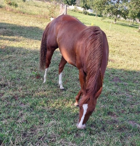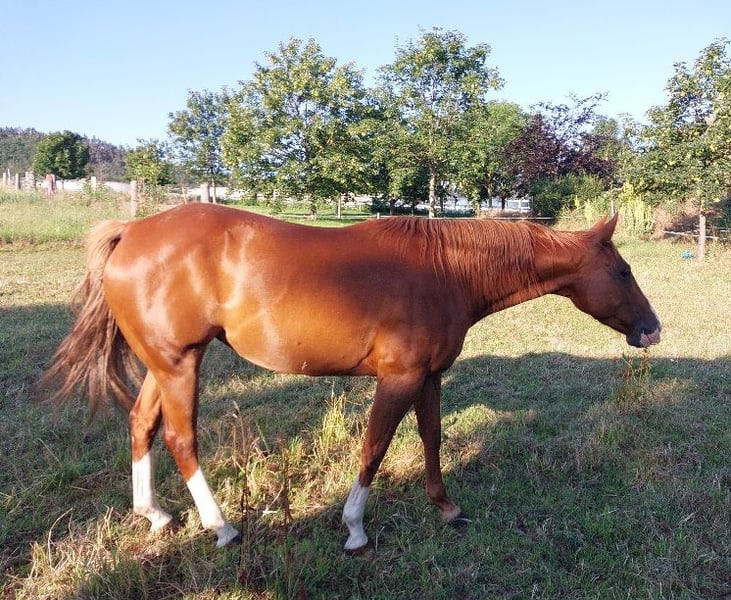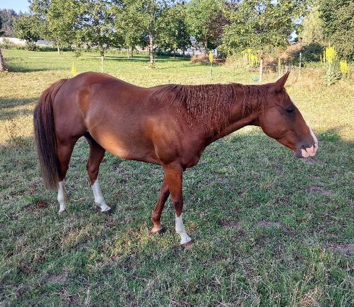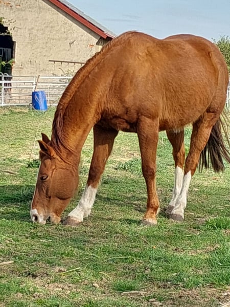 Barbie ist eine sehr liebe, verträgliche Stute mit 1a-Abstammung, registriert bei Paint- und Quarterhorse-Association, hervorragend geeignet zur Zucht und als treues Familienpferd. Sie passt in jede Herde, ist umgänglich und unkompliziert. Derzeit steht Barbie beim Trainer Erich Busch im Westernreitzentrum Lippe. Interessenten wenden sich bitte direkt an ihn (http://www.westernausbildung.de).