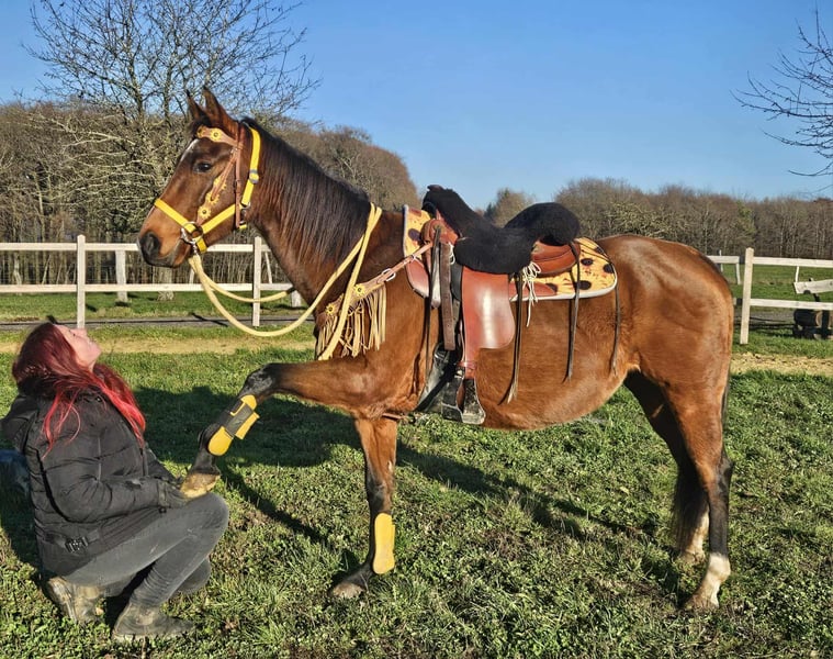Jument Quarter Horse avec papiers TENDER HOPE Âgée de 9 ans Taille : 1,52 m AKU inclus Pass E inclus – Calme et docile à la monte et au manège – Amicale et équilibrée – Très proche de l’humain et facile à gérer – Connaît le box à aire ouverte et la vie en troupeau – Prête pour d’autres activités de loisir Idéale pour : Loisirs, balades et familles avec expérience équestre Nos chevaux : – Régulièrement vermifugés – Soignés par le maréchal-ferrant et l’ostéopathe Notre boutique : Selles western, brides, accessoires Transport et accessoires organisés à prix avantageux sur demande Notre service : ✅ 3 mois de droit d’échange ✅ Test de monte : 35 €, chaque cheval supplémentaire 25 € (déduit si achat le même jour) ✅ Remise immédiate de 100 € pour récupération ou transport le jour même ✅ Conseil personnalisé et honnête Pour toute demande, merci de nous contacter uniquement par téléphone : 0171 – 4001968 Disponible tous les jours de 8h à 20h ⚠️ Pas d’e-mails ni WhatsApp ⚠️ Toutes nos informations sont données à titre indicatif, sans garantie