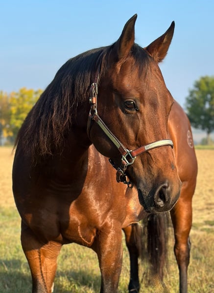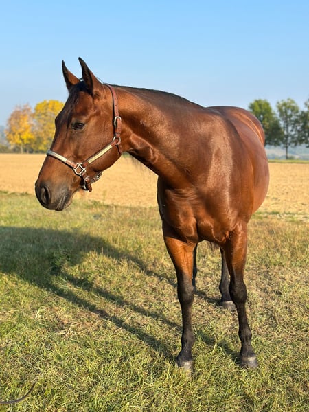 Reliable, brave mare with a wonderful character This beautiful brown mare is available for sale, impressing with her balanced temperament and dependability. She is always motivated during training and is exceptionally well-behaved and personable both on the ground and under saddle. In daily work, she demonstrates a good work ethic, is rideable, and easy to handle. Whether in the arena, on the trail, or in the paddock – she remains calm and focused at all times. Thanks to her clear mind, she is an ideal leisure partner but also suitable for ambitious riders who value a dependable horse. Her correctly built conformation and harmonious exterior also make her an interesting prospect for breeding. She comes from a proven bloodline with solid performance and good temperament. An honest, friendly mare that brings joy every day – whether as a riding horse or future broodmare. For more information, contact: +39 377 358 0355