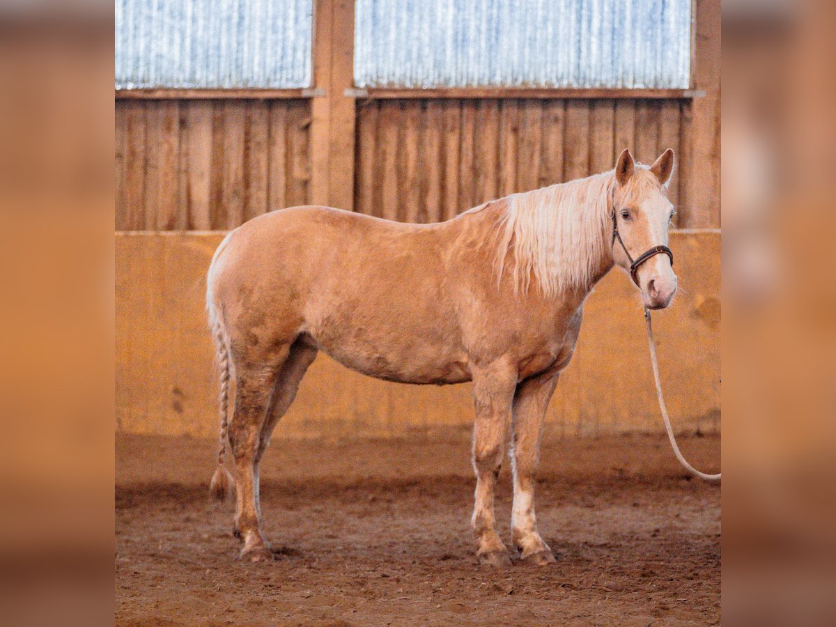 DCs golden Lulani ,,Lu,, *03/2016 Trenne mich von meiner Stute Lu. Ich habe sie, seitdem sie 6 Monate ist und trenne mich aus persönlichen Gründen von ihr. Ich habe sie größtenteils allein im Gelände geritten, aber hin und wieder auch in der Halle. Lu läuft in allen drei GGA sicher. Sie ist neugierig und eine absolute Lebensversicherung beim Reiten. Wir waren oft an Rindern. Sowohl in der Halle, auf der Wiese und auch im freien Gelände hat sie immer einen guten Job gemacht und ist nie gebuckelt, gestiegen, oder durchgegangen. Die Arbeit am Rind macht ihr sehr viel Spaß und liegt ihr auch. Dummys ropen haben wir geübt und auch dabei war sie immer cool. Den ein oder anderen Orientierungsritt sind wir auch zusammen geritten. Auch dabei war sie unerschrocken und sicher. In der Freiarbeit zeigt sie sich sehr motiviert und willig. Leider hab ich hier aus Zeitgründen wenig gemacht. Lu ist 1,60m groß, lässt sich allein verladen und läuft schon immer problemlos barfuß. Sie kann stundenweise allein auf dem Paddock und auch auf der Koppel bleiben. Momentan steht Lu zusammen mit einem Wallach und einer Stute. Sie zeigt sich hier nicht ranghoch und frisst problemlos mit beiden aus einer Raufe. Kennt Hunde und sämtliche Hoftiere. Sie ist kein Kinder-/Anfängerpferd, da sie im Umgang einen sicheren Menschen benötigt. Platz vor Preis Kein Notverkauf