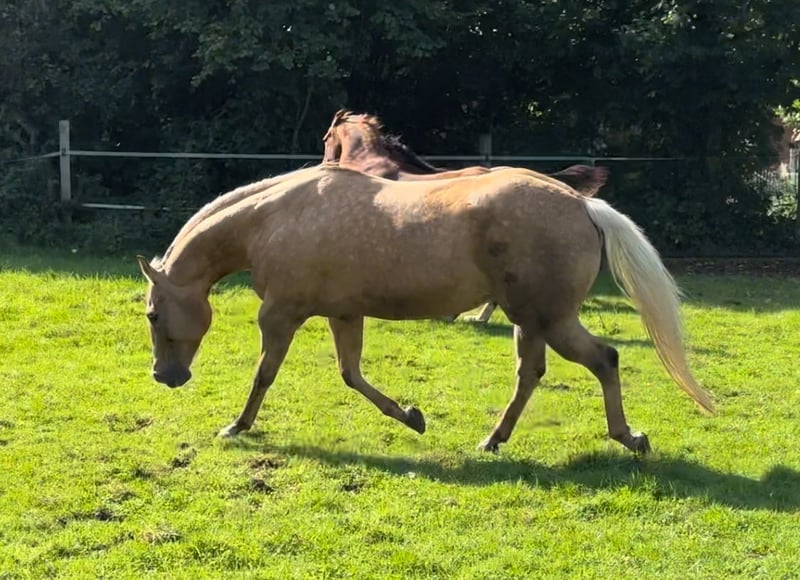 Seltene Gelegenheit einer traumhaft schönen braven Wimpy Tochter. Sie ist die Vollschwester zur erfolgreichenCharly Step n Cool LTE 95.000.— Bisher weitgehend als Zuchtstute und Freizeitpferd eingesetzt. Sie ist sehr stylish und athletisch und gibt das an ihre Fohlen weiter( siehe letzten beiden Bilder). Charly hat hervorragende Bewegungen, Naturwechsler. 6 Panel nn , Standort Nähe Düsseldorf Gerne weiter Info unter 0172/2464963
