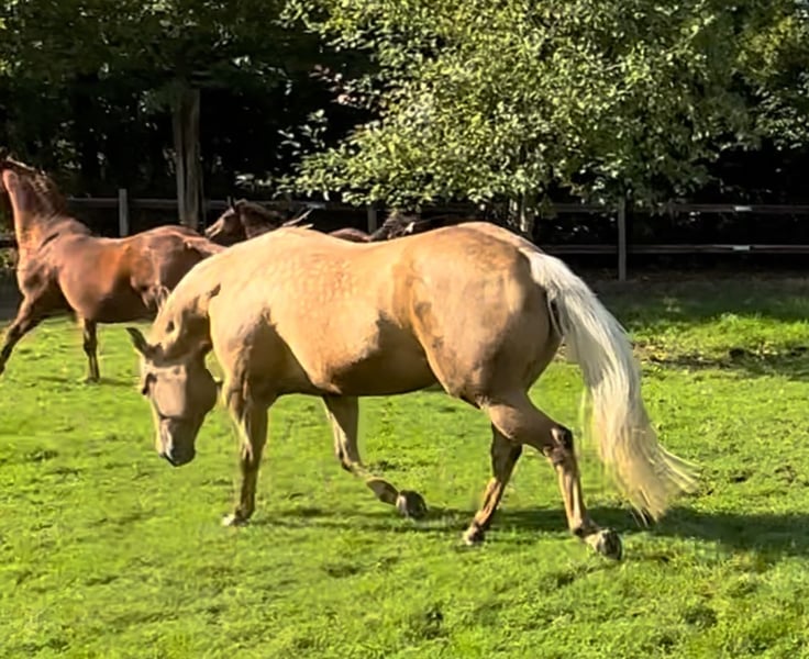 Occasione rara di una splendida e tranquilla figlia di Wimpy. È la sorella completa della rinomata Charly Step n Cool LTE, venduta a 95.000 euro. Finora è stata utilizzata principalmente come cavalla da riproduzione e da tempo libero. È molto elegante e atletica, e trasmette queste qualità ai suoi puledri (vedi le ultime due foto). Charly possiede movimenti eccellenti ed è un naturale cambiatrice di galoppo. 6 panel nn, posizione nei pressi di Düsseldorf. Per ulteriori informazioni, contattare il 0172/2464963.