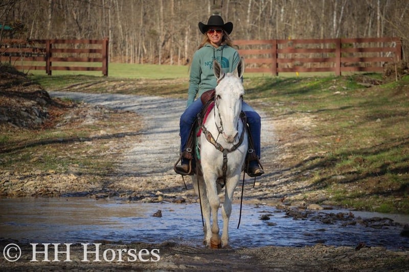 ONLINE AUCTION Place your bids at www.PlatinumEquineAuction.com Starting Bid $3500 Auction ends January 26th, 2025 Need a new saddle? Check out White Rock Saddles on our website or Facebook! This is “STARDUST”, a FLASHY, FUN, GENTLE, AND QUIET NATURED Blue Roan Paint Molly Mule that has been ridden by novice and beginner riders. This mule has been in the mountains and ridden by a gentleman in his 70’s. She has no buck, no hump, and no tricks or surprises. She is an easy mule to have around that handles her ears, all four feet, and she has excellent ground manners. She stands tied quietly, loads, bathes, and hauls with no issues. She stands 14.2 hands tall and is 11 years old. She has been through deep water, on rough and rocky ground, and on the main roads. She has been on organized rides with lots of other horses, mules, wagons, and commotion and handled it all fine. She also rides out alone with confidence and enjoys to trail ride. She will not go any faster than what you ask of her, she is easy to stop, and she stands to mount. She has been ridden double, bareback, and also in just a halter and lead rope. If you need a quiet gentle mule that is a handy size to get on and off of, don’t miss out. She’s pure and honest. For more info or to make a Buy It Now Offer call HH Horses Erin 304-238-4155 Located in Flemingsburg, KY. ONLINE AUCTION Place your bids at www.PlatinumEquineAuction.com Starting Bid $3500 Auction ends January 26th, 2025 Need a new saddle? Check out White Rock Saddles on our website or Facebook!