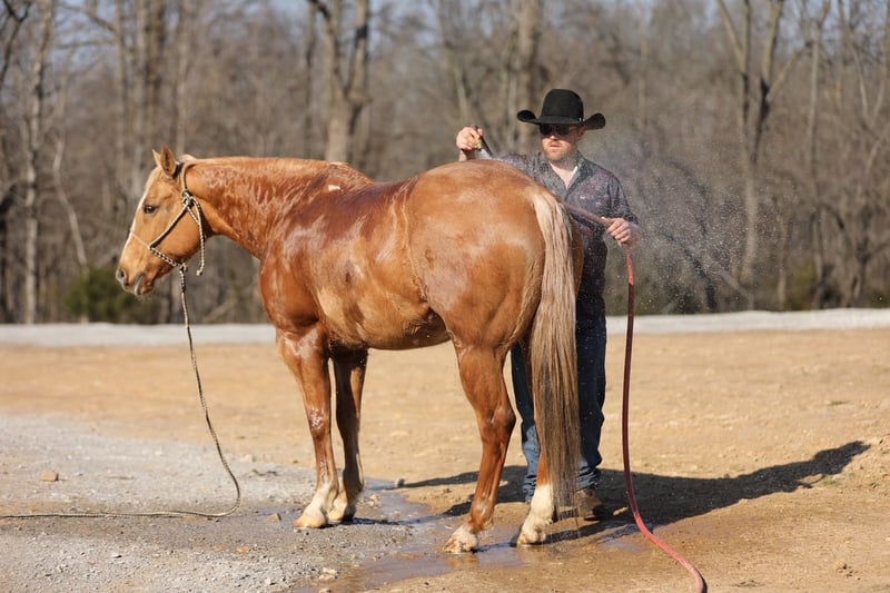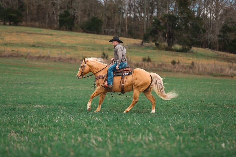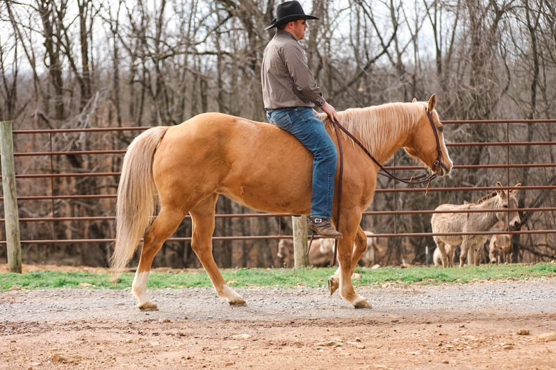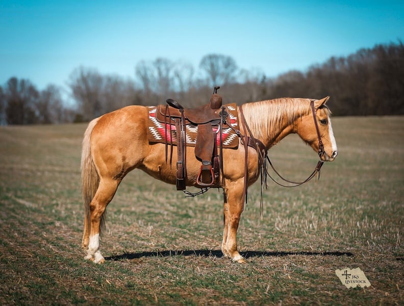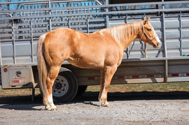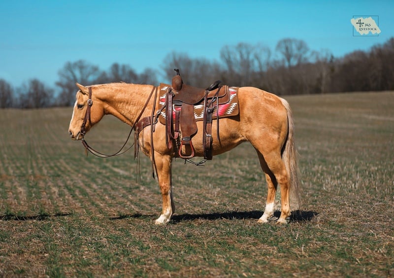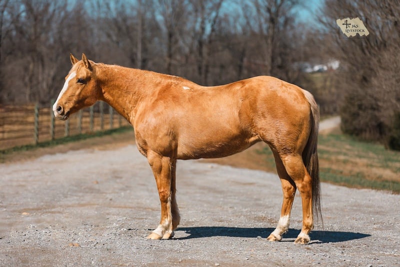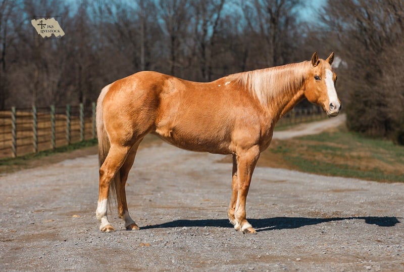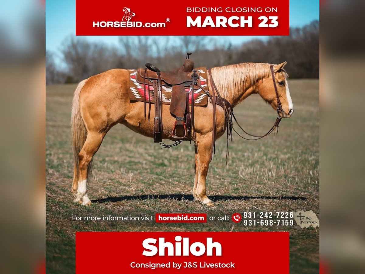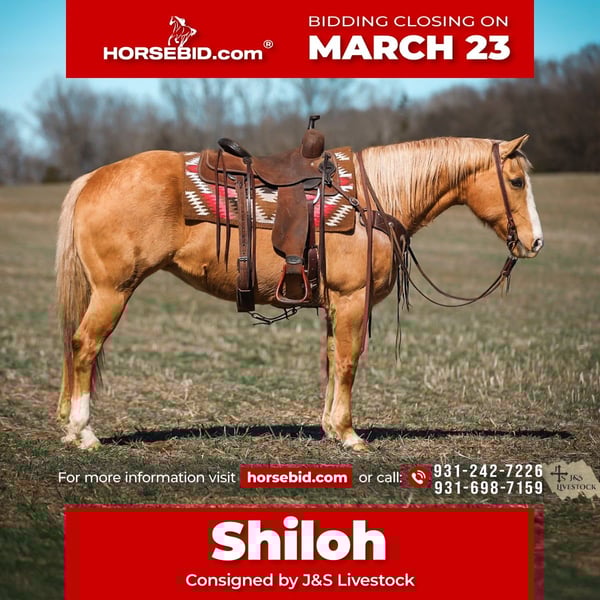 ⚜️𝓽𝓱𝓮 𝐆𝐎𝐋𝐃 𝓢𝓮𝓵𝓮𝓬𝓽⚜️ Happening now thru MONDAY | MARCH 23rd - Available EXCLUSIVELY on HorseBid's website! For more details and to register visit: www.Horsebid.com CONSIGNOR CONTACT: J&S Livestock 931-242-7226 or 931-698-7159 LOCATION: Santa Fe, TN BREED: Quarter Horse REGISTERED: No COLOR: Palomino HEIGHT: 15 AGE: 12 GENDER: Mare Shiloh, the definition of broke, broke, broke, is a golden palomino mare with a huge heart and tons of grit. This gorgeous girl is big, shapey, and well mannered. Shiloh stands 15 hands tall and is 12-years-old. This mares resume truly checks many boxes- ranch work, overnight camping trips, trails, to toting the kids around. Shiloh would be an excellent family horse. She is safe, calm natured on the ground, and is the perfect size to make everyone in the family happy. She navigates down the trails like a pro, staying steady and surefooted on all terrain, never getting her rider in a bind. She will cross through the deepest water, travel along the muddiest ground, to narrowing binds, wooded areas, to safely traveling through open country. She has been used on multiple overnight camping trips where she has led a pack mule around. She rides out alone or in groups, she’s happy leading the pack or bringing up the rear. When it comes to ranch work we have used her to gather, pen, sort, and doctor on, and she does it all with determination and grit. She has also been very useful for us ponying colts on. Shiloh sure makes for an easy mount and fun one too. She also doesn’t mind packing the kids around. She is used to all the shenanigans the young ones can pull from time to time. She also does good in the arena- she rides one handed, neck reins, side passes, is soft in the bridle, and has nice lead changes. On the ground Shiloh is calm, and kind hearted. She stands tied patiently, easy to catch, loves a good bath, and to be groomed on. She trailers easily and tacks up hassle free. This golden dream of a mare has that old school shape, kind demeanor, and safeness that’s hard to find. Anyone would truly be lucky to add Shiloh to their string. Shiloh has a recent PPE and is also up-to-date on dental work. For any further information or questions please feel free to reach out! Bailey 931-242-7226 or JT 931-698-7159.