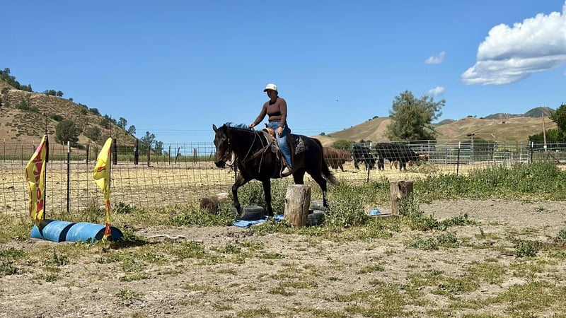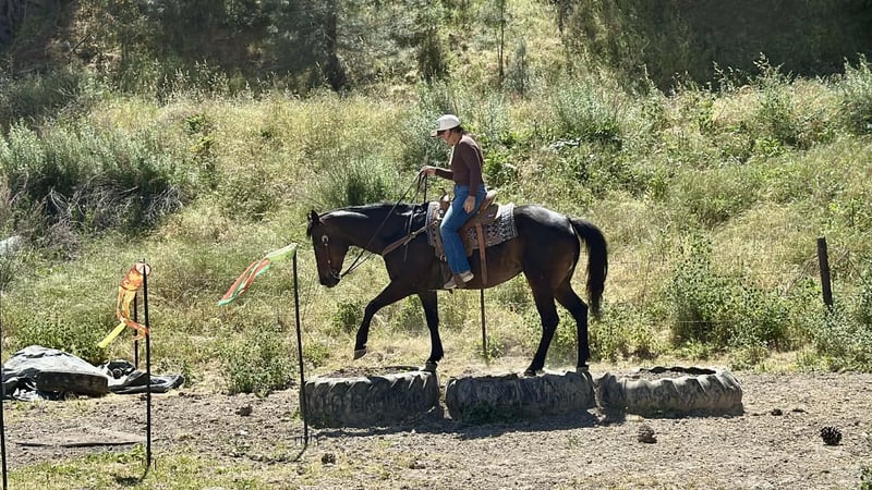 "AVAILABLE ON ONLINE HORSE AUCTION AT www DOT PlatinumEquineAuction DOT com BIDDING OPEN NOW thru SUNDAY | APRIL 26TH! *Final price will be determined on auction site* CONSIGNOR CONTACT INFO: Cheyenne Rey 831-537-8746 LOCATION: Bitterwater, CA Sasha is a stunning 13-year-old brown mare standing 15.1 HH, offering the perfect combination of safety, reliability, and eye-catching presence. If you’re searching for a dependable partner with a “fancy broke” feel, Sasha truly checks every box. This mare has been there and done that. From long, technical mountain trails to the bright lights and energy of rodeo arenas, Sasha takes everything in stride. She is exceptionally level-headed and unflappable—completely unfazed by loud music, bicycles, crowds, or commotion. Her steady temperament makes her a confidence-builder for riders of all levels. On the trail, Sasha is as trustworthy as they come. She rides out confidently alone or in a group setting, whether leading the pack or happily following along. She crosses water, bridges, and navigates rough or challenging terrain with ease, never hesitating and always taking care of her rider. In the arena, Sasha is equally impressive. She is incredibly light and responsive—you can ride her with just a pinky on the reins, and she will willingly and accurately respond to the slightest cue. She is well-versed in all the foundational reining maneuvers, including smooth flying lead changes, correct stops, spins, and reverses. Her training makes her both enjoyable and easy to ride, whether you’re refining your skills or just out to have fun. Sasha is also a pleasure to have around the barn. She stands quietly tied, is excellent for the farrier, and is truly as uncomplicated as they come. Her kind nature and solid training make her a standout choice for anyone wanting a safe, capable, and versatile horse. If you’re looking for a trustworthy, well-trained mare with the looks and experience to match, Sasha is the one you’ve been waiting for. She is located in Bitterwater, CA. For more information call or text Cheyenne at 831-537-8746.