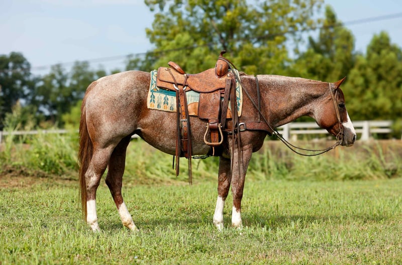 ONLINE AUCTION Place your bids at www.PlatinumEquineAuction.com Starting Bid $3500 Auction ends September 7th, 2025 Need a new saddle? Check out White Rock Saddles on our website or Facebook Meet Fancy a stunning 12 year old APHA red roan mare, standing 15.2 hands tall with 4 white socks she is sure to catch everyone’s eye! Fancy is absolutely gentle and quiet to be around! She’s been shown in ranch pleasure, showmanship, and been hauled to 4-H and playdays! Whether you’re looking for a reliable show partner or a confidence-boosting trail horse, she’s got you covered. Fancy is a dream to handle, with a sweet personality that makes her a barn favorite. She’s equally comfortable navigating arena patterns as she is exploring scenic trails. Her smooth gaits and responsive nature make her a joy to ride for riders of all levels. Fancy has been hauled to lots of state parks and has been on lots of camping trips! She stands tied, loads and hauls good, good for the farrier and vet! Fancy is easy to catch, saddles, bridles and stands for mounting! Super gentle family safe mare! Don’t miss the opportunity to own a horse that combines beauty, brains, and a gentle heart. Call or text Rachel at 605-370-4644 for more info! ONLINE AUCTION Place your bids at www.PlatinumEquineAuction.com Starting Bid $3500 Auction ends September 7th, 2025 Need a new saddle? Check out White Rock Saddles on our website or Facebook