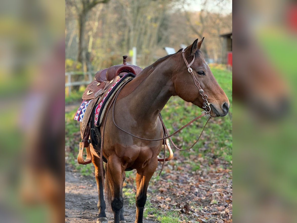 Quarter Horse Stute – LKR ZAINA – zuverlässige Zuchtstute mit erstklassigem Pedigree Zum Verkauf steht die braune Quarter Horse Stute LKR ZAINA (Amy) Sie ist 13 Jahre alt, ca. 155 cm groß und überzeugt vor allem durch ihr tolles Pedigree, dass sie zu einer idealen Zuchtstute macht. Eigenschaften & Charakter • Brav im Umgang – freundlich, menschenbezogen und unkompliziert • Schmiede- und verladefromm • Regelmäßig geimpft und entwurmt Nutzung ZAINA ist bedingt reitbar und daher nicht für Anfänger geeignet. Als Zuchtstute bringt sie jedoch alles mit, was man sich wünscht: hervorragende Abstammung, korrektes Exterieur und einen klaren, ruhigen Charakter. Keine aktuelle Ankaufsuntersuchung vorhanden. Im Auftrag zu Verkaufen. Kontakt gerne per WhatsApp 0172 42 90 43 5