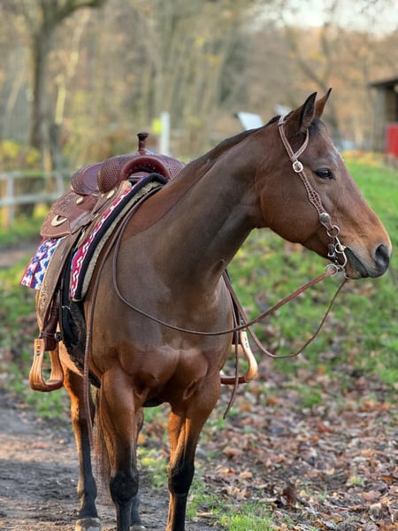 Quarter Horse Mare – LKR ZAINA – Reliable Broodmare with Excellent Pedigree For sale is the chestnut Quarter Horse mare LKR ZAINA (Amy). She is 13 years old, approximately 15.5 hands tall, and impresses primarily with her outstanding pedigree, making her an ideal broodmare. Characteristics & Temperament • Well-behaved and friendly – approachable, people-oriented, and easy to handle • Shoeing- and loading-safe • Regularly vaccinated and dewormed Usage ZAINA is conditionally rideable and therefore not suitable for beginners. However, as a broodmare, she possesses everything one could wish for: excellent lineage, correct conformation, and a calm, steady temperament. No current pre-purchase exam available. Sold on behalf of the owner. Feel free to contact via WhatsApp at 0172 42 90 435.