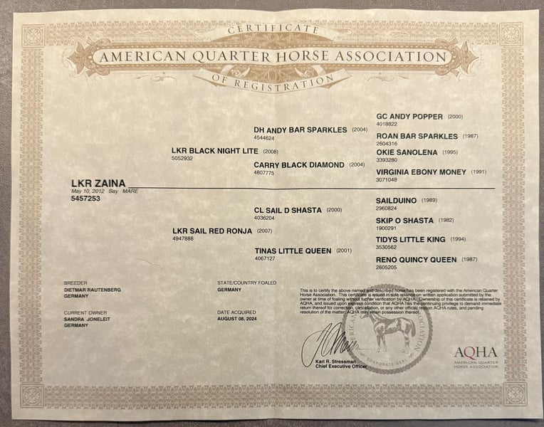 Quarter Horse Stute – LKR ZAINA –
