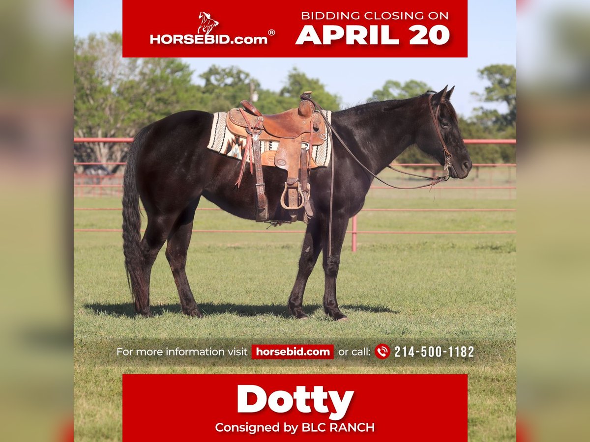 Dotty, een 15-jarige zwarte AQHA merrie van 15 hand hoog