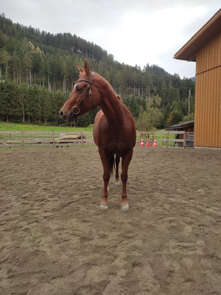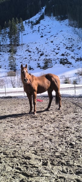 Spook in the Sand – verlässliche Quarter-Horse-Stute mit solider Ausbildung sucht passenden Platz Zum Verkauf steht meine Quarter-Horse-Stute Spook in the Sand (geb. 2008, ca. 155 cm). Spook wurde ursprünglich im Westernbereich ausgebildet (Reining, Trail, Pleasure) und wird seit 2016 nach den Prinzipien der klassischen Reitkunst gearbeitet. Sie bringt somit eine vielseitige und fundierte Ausbildung mit und lässt sich fein und differenziert reiten. Im Umgang ist sie absolut zuverlässig, freundlich und unkompliziert – ein echtes Verlasspferd im Alltag. Unter dem Sattel ist sie kein typisches Anfängerpferd, da sie eine feine Hilfengebung schätzt. Mit entsprechender Unterstützung und Anleitung ist sie jedoch auch für weniger erfahrene Reiter gut zu händeln. Sie kennt sowohl Platz- als auch Geländearbeit und zeigt sich dabei motiviert und kooperativ. Trotz ihrer Größe und Statur ist sie kein Gewichtsträger! Besonderheit: Spook koppt seit dem Jungpferdealter nach Kraftfuttergabe. Das Verhalten ist bekannt, gut einschätzbar und im Management entsprechend zu berücksichtigen. Ich wünsche mir für sie einen wertschätzenden Platz, an dem sie weiterhin sinnvoll gearbeitet wird – Platz geht klar vor Preis. Standort: Gries im Sellrain Preis: 3.000 € VB Bei ernsthaftem Interesse freue ich mich über eine Nachricht mit kurzer Vorstellung.