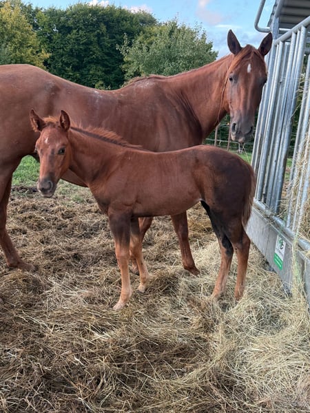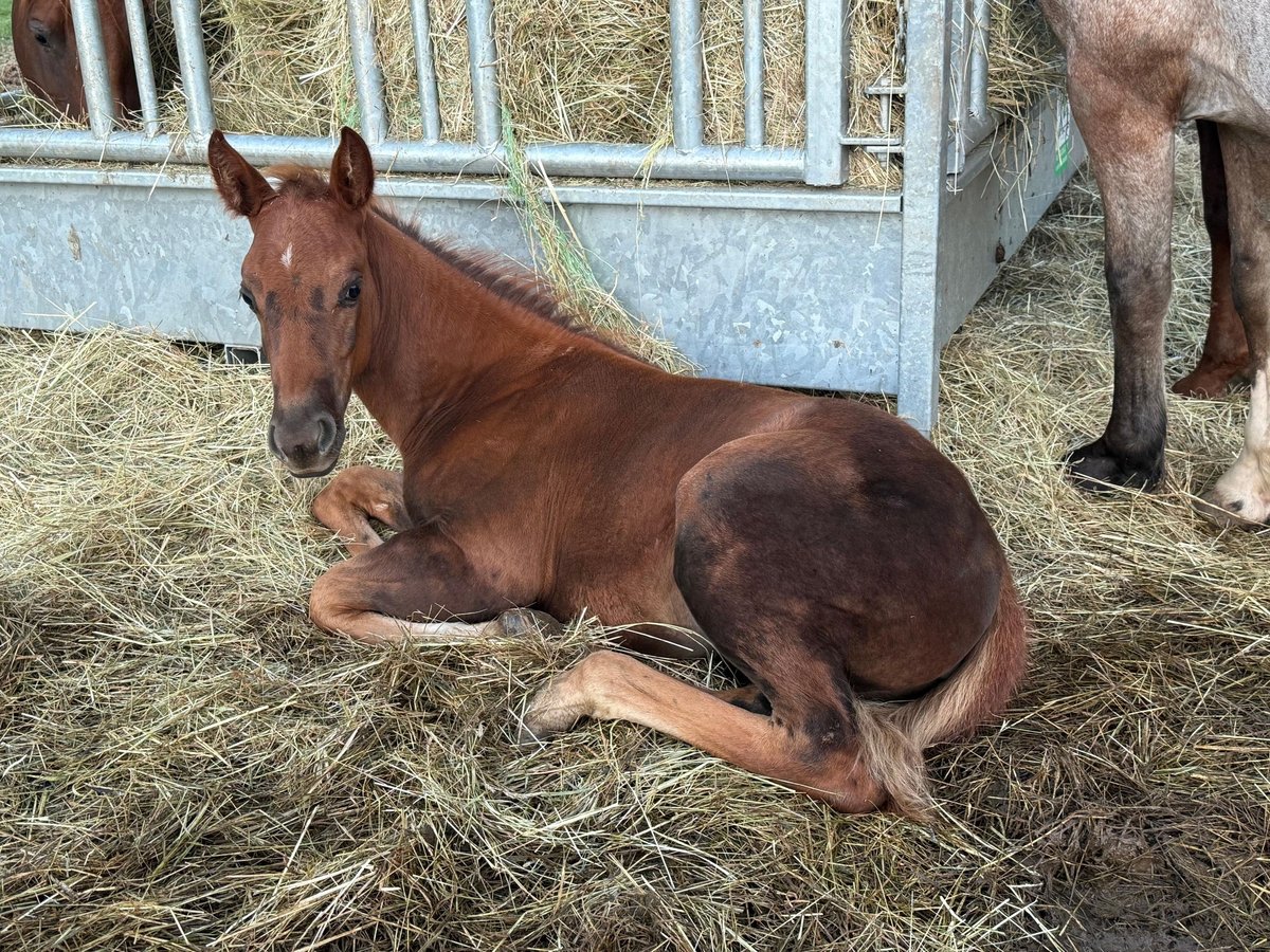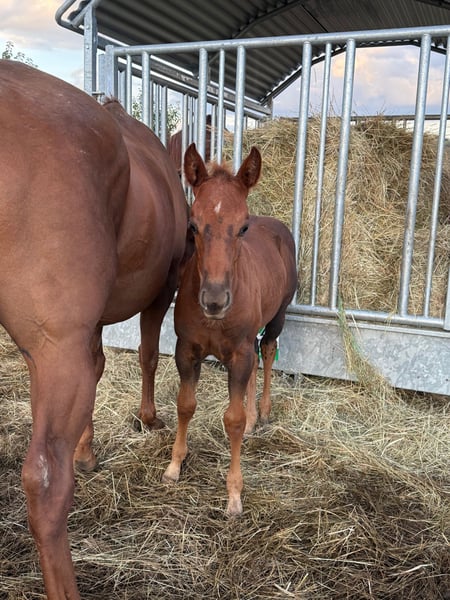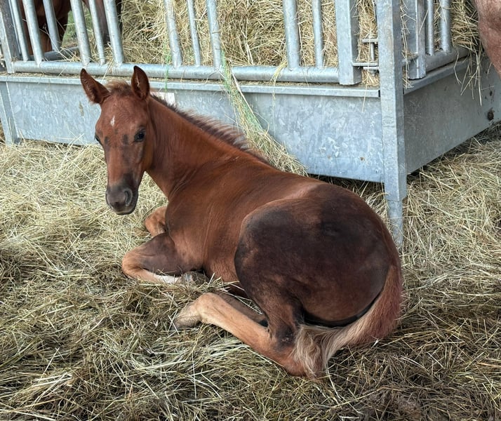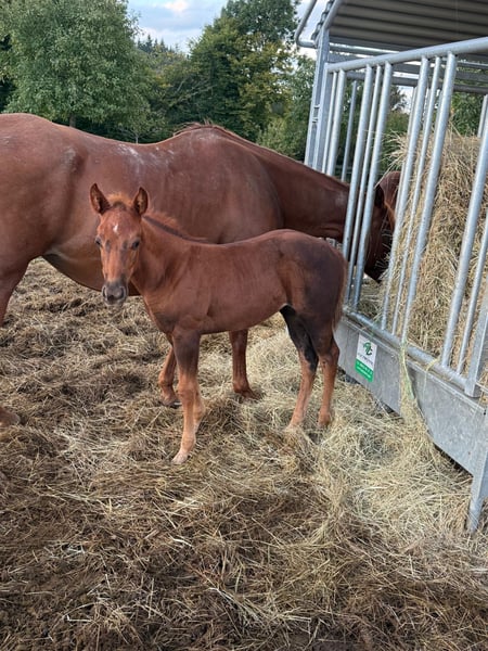 For sale is a lovely Quarter Horse filly born on July 12, 2025. The sire is a successfully shown Quarter Horse stallion "CC Nite Rider" (directly by Gunner Special Nite) 5 Panel N/N, and the dam is a well-bred, recreationally ridden Quarter Horse mare 6 Panel N/N. The filly is growing up in a herd with other foals in a species-appropriate environment and is being well cared for. She has a very good conformation and already shows great movement. If you are looking for a fantastic young horse for sport or leisure, she is the right choice for you. We might also sell the mother, likely in foal to the Quarter Horse stallion "USS Whiz" (directly by Topsail Whiz)... No known diseases or allergies. A veterinary examination is welcome. Feel free to call or send a message to 0157 36803742. All information is without guarantee, price changes reserved, transport possible, online purchase available.