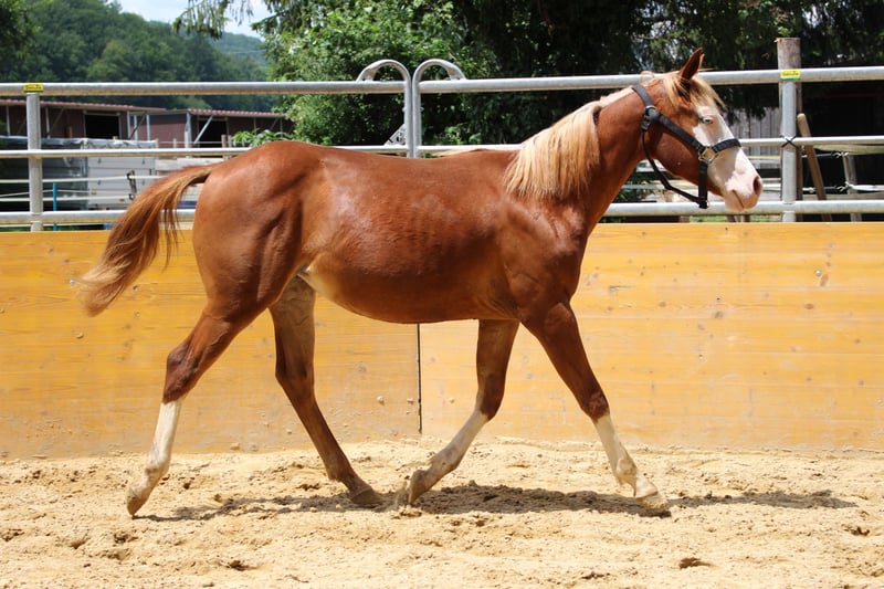 Zum Verkauf steht eine wunderschöne American Quarter Horse Stute, geboren im Jahr 2023. Diese junge Dame besticht durch ihre auffällige Fuchsfarbe mit Flachsmähne, als auch durch ihre bombastische Abstammung! Wenn Sie auf der Suche nach einem vielversprechenden Nachwuchspferd sind, das sowohl im Sport als auch als Freizeitpartner überzeugt, dann ist diese Stute genau das Richtige für Sie. „Twiggy“ ist halferführig, kennt das Fohlen ABC, ist regelmäßig entwurmt und dem Schmied vorgestellt und wächst in einer altersgemischten Stutengruppe in Offenstallhaltung auf. Bei Interesse oder für weitere Informationen, bitte melden!