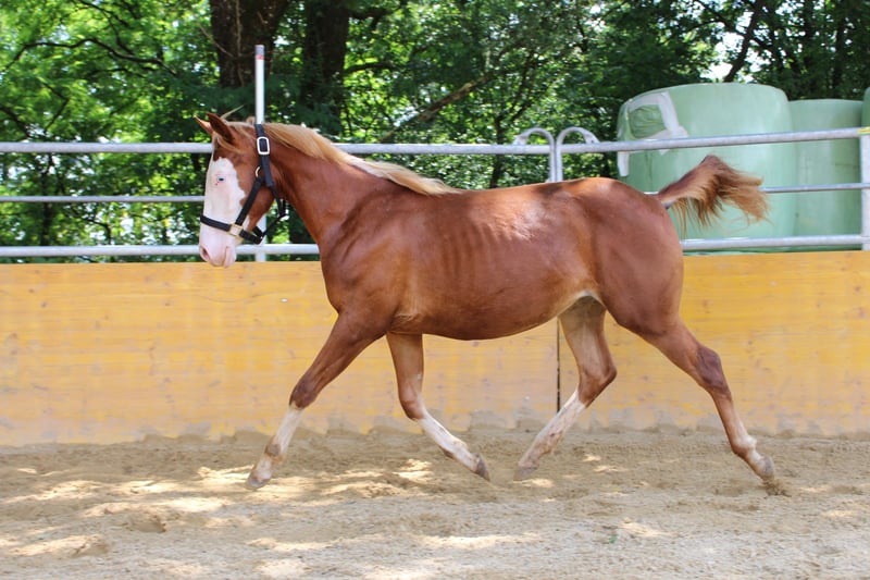 Zum Verkauf steht eine wunderschöne American Quarter Horse Stute, geboren im Jahr 2023. Diese junge Dame besticht durch ihre auffällige Fuchsfarbe mit Flachsmähne, als auch durch ihre bombastische Abstammung! Wenn Sie auf der Suche nach einem vielversprechenden Nachwuchspferd sind, das sowohl im Sport als auch als Freizeitpartner überzeugt, dann ist diese Stute genau das Richtige für Sie. „Twiggy“ ist halferführig, kennt das Fohlen ABC, ist regelmäßig entwurmt und dem Schmied vorgestellt und wächst in einer altersgemischten Stutengruppe in Offenstallhaltung auf. Bei Interesse oder für weitere Informationen, bitte melden!