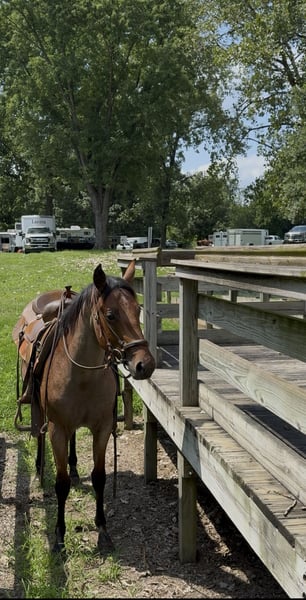 "AVAILABLE ON ONLINE HORSE AUCTION AT www DOT MagicHorseAuction DOT com BIDDING OPEN NOW thru TUESDAY | November 11TH! - BUY IT NOW AVAILABLE! *Final price will be determined on auction site* CONSIGNOR CONTACT INFO: Shauna Cooper 309-229-4249 LOCATION: Princeville, IL This exceptional bay roan filly is the total package: sound, sane, and stunning. Foxy is a registered AQHA 2-year-old with 90 solid days of professional training. She’s hands down the best 2-year-old I’ve ever had the pleasure of owning. Eager to learn, incredibly smart, and retains everything she's taught. She’s been extensively exposed to all kinds of environments and situations, and nothing fazes her: water, mud, logs, tarps, traffic, and more. Foxy crosses it all without hesitation and never gets rattled. Highlights: No scars or blemishes, 14.2 HH at withers - 15.00 HH at hip, Excellent manners: Easy to catch, stands tied quietly at the trailer, picket line, or wall, Sound and healthy, Feet trimmed: October, Teeth floated: July, 5-way vaccine: March, Regular worming schedule, Rides off immediately — no warm-up needed, even with time off, Great in the stall or turned out, Lopes off either lead, and has a great start to neck reining, Truly rides like a seasoned older horse. Foxy is ready to go in any direction — ranch work, trail, performance, or cow work. She’s gentle, level-headed, and absolutely broke beyond her years. Suitable for any rider ready to take her forward. You’ve got to ride her to believe it — come try her out and see for yourself!