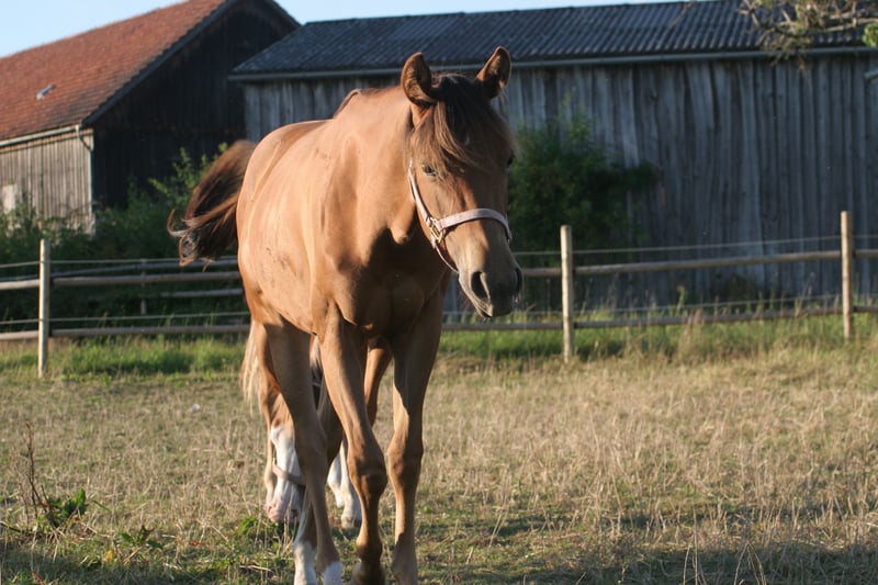 **Verkaufsanzeige: American Quarter Horse Stute** Zum Verkauf steht eine vielversprechende American Quarter Horse Stute, geboren im Jahr 2023. Diese junge Fuchsstute beeindruckt bereits jetzt mit einem großem Talent im Reining. **Merkmale:** - Rasse: American Quarter Horse - Geschlecht: Stute - Geburtsjahr: 2023 - Farbe: Fuchs - Stockmaß: 150 cm - Disziplin: Reining Diese Stute ist ein echter Hingucker und bringt die besten Voraussetzungen für eine erfolgreiche Zukunft im Reining-Sport mit. Sie ist freundlich, lernwillig und zeigt bereits jetzt eine hohe Leistungsbereitschaft. Bei Interesse freuen wir uns auf Ihre Nachricht!