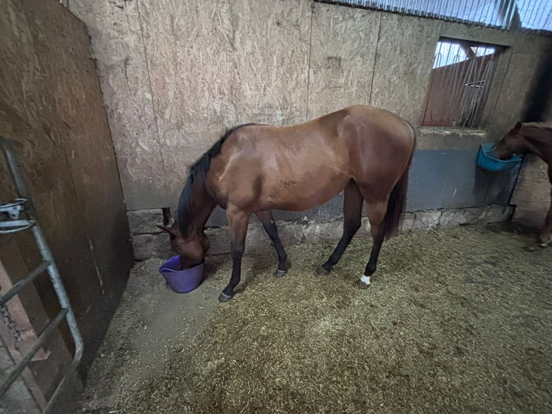 My Blue Charm - die am 01.03.2024 geborene Quarter Horse Stute ist ein echtes Nachwuchstalent mit bester Allround- und Pleasure-Abstammung. Sie ist aktuell ca. 145 cm groß und wird voraussichtlich ein Endmaß von etwa 155-160 cm erreichen. Mit ihrer ausdrucksstarken braunen Farbe, dem harmonischen Gebäude, der ausgewogenen Bemuskelung und ihren korrekten Beinen mit gesunden, starken Hufen überzeugt sie schon jetzt auf ganzer Linie. Rose ist gesund, 5-Panel n/n, gut entwickelt und wurde artgerecht im Herdenverband aufgezogen. Sie kennt sowohl die Box mit täglichem Weidegang als auch das Leben auf dem Paddock und zeigt sich in der Herde absolut sozial und umgänglich. Im täglichen Umgang präsentiert sie sich aufmerksam, freundlich und sehr menschenbezogen. Rose ist aufgeschlossen, neugierig, unkompliziert und lernt schnell. Ihr ruhiges, angenehmes Wesen in Kombination mit einem wachen Geist macht die Arbeit mit ihr besonders angenehm. Ob beim Tierarzt oder Hufschmied - sie zeigt sich stets brav und gelassen. Geimpft, entwurmt und gechippt ist sie bestens versorgt und kennt bereits das kleine Fohlen-Einmaleins. Auch an Umweltreize wie Landmaschinen, Hunde und Kinder ist sie gewöhnt. Ihre Bewegungen sind fließend und vielversprechend für den späteren Einsatz im Pleasure- oder Allroundbereich. Futurity startberechtigt!! My Blue Charm bringt alles mit, was man sich von einem jungen Pferd wünscht - eine tolle Basis für Sport, Freizeit oder Zucht. Kann zu attraktiven Konditionen zur Aufzucht bleiben. Auf Wunsch kann die Bezahlung in zwei Raten erfolgen.