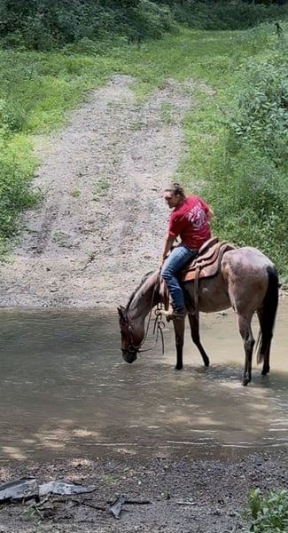 "AVAILABLE ON ONLINE HORSE AUCTION AT www DOT MagicHorseAuction DOT com BIDDING OPEN NOW thru TUESDAY | November 11TH! - BUY IT NOW AVAILABLE! *Final price will be determined on auction site* CONSIGNOR CONTACT INFO: Shauna Cooper 309-229-4249 LOCATION: Princeville, IL This exceptional bay roan filly is the total package: sound, sane, and stunning. Foxy is a registered AQHA 2-year-old with 90 solid days of professional training. She’s hands down the best 2-year-old I’ve ever had the pleasure of owning. Eager to learn, incredibly smart, and retains everything she's taught. She’s been extensively exposed to all kinds of environments and situations, and nothing fazes her: water, mud, logs, tarps, traffic, and more. Foxy crosses it all without hesitation and never gets rattled. Highlights: No scars or blemishes, 14.2 HH at withers - 15.00 HH at hip, Excellent manners: Easy to catch, stands tied quietly at the trailer, picket line, or wall, Sound and healthy, Feet trimmed: October, Teeth floated: July, 5-way vaccine: March, Regular worming schedule, Rides off immediately — no warm-up needed, even with time off, Great in the stall or turned out, Lopes off either lead, and has a great start to neck reining, Truly rides like a seasoned older horse. Foxy is ready to go in any direction — ranch work, trail, performance, or cow work. She’s gentle, level-headed, and absolutely broke beyond her years. Suitable for any rider ready to take her forward. You’ve got to ride her to believe it — come try her out and see for yourself!