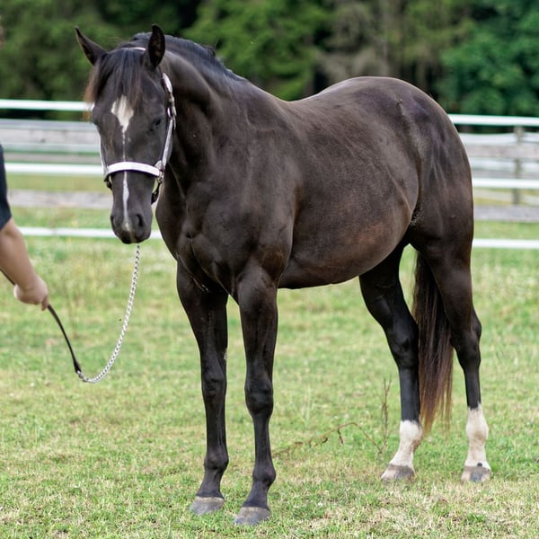 QB Coco Banjo - dieser junge Eyecatcher (Stute, 3.2023 geboren ) in edlem Black zieht alle Blicke auf sich! Mit einem aktuellen Stockmaß von 147 cm, sehr schönem und korrektem Gebäude sowie einer erstklassigen Reining/Allround-Abstammung bringt sie alles mit, was man sich für Sport, Turnier oder die ambitionierte Freizeit wünscht. Ihre Highlights sind unter anderem ihre tolle Farbe und ihr Ausdruck sowie ein stabiler, harmonischer und korrekter Körperbau und einen ganz lieben, menschenbezogenen, verschmusten Charakter. Kerngesund und 6-Panel n/n. Coco wächst im Herdenverband mit gleichaltrigen Stuten auf. Wird täglich gehändelt und kennt alles, was man als Jungpferd in ihrem Alter kennen und können sollte. Zeigt bereits im Freilauf eine tolle Bewegungsqualität und viel Talent, ideal für Reining, Allround oder vielseitigen Einsatz. Coco ist eine Tochter vom erfolgreich geshowten QH Hengst High Roller Whiz. Cocos Mutter wurde ebenfalls geshowt und ist Allround gezogen. Ein echtes Juwel für Kenner und Liebhaber. Wird direkt vom Züchter abgegeben.
