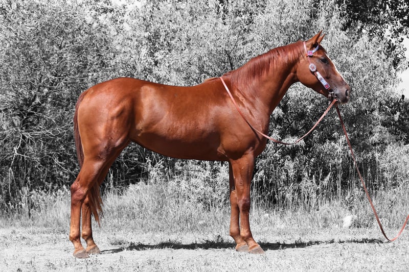 "AVAILABLE ON ONLINE HORSE AUCTION AT www DOT MagicHorseAuction DOT com BIDDING OPEN NOW thru TUESDAY | AUGUST 5TH! - BUY IT NOW AVAILABLE! *Final price will be determined on auction site* CONSIGNOR CONTACT INFO: Dynamite Horses 970-632-3644 LOCATION: Fort Collins, CO "★★ MMB TOUCHES DAISY ★★ “Getty” | Sorrel mare with chrome -Gorgeous • Broke • Ready to Shine Meet MMB Touches Daisy, affectionately known as Getty — a stunning sorrel mare who checks all the boxes for style, substance, and a great mind. She’s built like a brick house, moves beautifully, and has the kind of soft, willing attitude that makes every ride a good one. Getty is an easy-going, people-loving mare with a true “in-your-pocket” personality. She’s been a pleasure to bring along — smart, sensible, and full of try. Her steady progress and good nature make her a standout for anyone looking for a solid, broke young mare with a promising future. Under saddle, Getty offers a smooth walk, jog, and lope, and stops off your seat and voice alone. She’s currently schooling flying lead changes, spins, rollbacks, and is coming along well with neck reining. She’s soft, balanced, and always tuned in to her rider. Getty is also confident and well-exposed. She’s carried a flag, walked over tarps, and handled all sorts of movement and noise around her without issue. We’ve even ridden her through downtown Fort Collins, where she calmly navigated traffic, bridges, bikes, strollers, joggers, and more — she even went for a swim in the river without hesitation! This mare has a rock-solid foundation, a great brain, and a work ethic to match. Whether you’re looking for a flashy prospect to take into the show pen or a reliable partner to enjoy on the ranch or trail, Getty is the kind of mare that’s ready to go in any direction. Watch her video and give us a call — she’s one you’ll want to meet in person!"