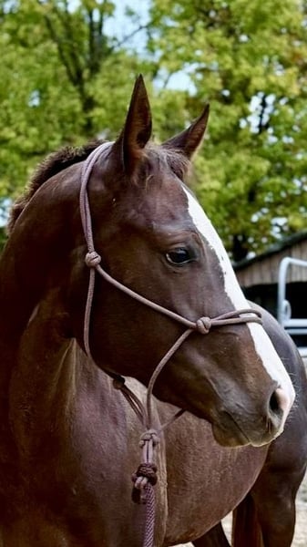 Rough Romance, mare by Unexpected X Already Too Sleepy, chestnut, born March 2023, approximately 1.60 m tall, unbroken · Unpolished gem! Not yet ridden or lunged in a bridle · Correct conformation · Beautiful movement, talented · Very sweet and friendly nature · Knows the usual handling skills (tacking up, grooming, leading) · Has been regularly shod · Regularly wormed and vaccinated About the sire: Unexpected comes from one of the most successful all-around lines in the USA: full brother to "The Rock" – 2-year-old World Champion Western Pleasure, full brother to "Justa Creepin" – Congress Reserve Champion & Superior WP, full brother to "Suddenly Style N" – dam of the renowned "Gone Viral" AQHA World Champion, 4-time NSBA World Champion, 2-time Congress Champion, 2-time Reserve Congress Champion. The dam line features "Already Too Sleepy" by "Too Sleepy To Zip" and "Invitation Only." The full siblings of the dam are Reserve Congress Champion in Western Pleasure, top five at Congress WP, and have earned over $20,000 USD.
