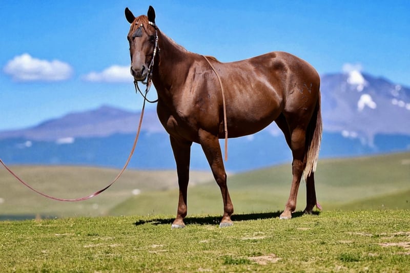 "AVAILABLE ON ONLINE HORSE AUCTION AT www DOT MagicHorseAuction DOT com BIDDING OPEN NOW thru TUESDAY | AUGUST 19TH! - BUY IT NOW AVAILABLE! *Final price will be determined on auction site* CONSIGNOR CONTACT INFO: Dynamite Horses 970-632-3644 LOCATION: Fort Collins, CO ★★ DAHLIA ★★ Registered as MMB Peppys San Hixs | 3-Year-Old Liver Chestnut Mare | Kind-Hearted, Versatile, and Unshakably Trustworthy. Dahlia is a gorgeous 3-year-old liver chestnut mare with a shining coat, a calm mind, and an incredibly generous heart. This young mare is a standout not only for her eye-catching color and conformation but for her steady disposition, remarkable trainability, and sweet-natured personality. She’s the kind of horse that builds confidence in her rider, no matter their age or experience. From the ground up, Dahlia has been an absolute pleasure to develop. She’s intelligent, willing, and has the demeanor of a horse well beyond her years. She meets you at the gate every morning with a soft eye and a friendly attitude, eager for attention and connection. She stands quietly to be brushed and bathed, loads and unloads easily, and maintains excellent ground manners in all settings. Dahlia enjoys the grooming process and thrives on human interaction, making her a true barn favorite with her puppy-dog presence. She knows an impressive set of groundwork maneuvers, including side passing to and away from the handler, spinning on cue, lunging both on and off the lead, and even following you freely with no halter or rope. She also carries herself with natural rhythm and softness, and is happy to learn and engage. Under saddle, Dahlia has been started in western pleasure and is showing excellent promise. She has a beautifully collected jog and a naturally slow, balanced lope. She responds softly to cues, has a clean backup and stop, and has begun work on rollbacks and sliding stops. She’s also had a rope swung off her and has been introduced to moving cattle — always showing composure and curiosity. She is light in the bridle and confident in new settings. Dahlia has also spent time in an English saddle and has gone over cavalettis with impressive poise and awareness. Her body control and natural cadence give her the foundation to develop into a lovely all-around prospect for multiple disciplines. While she excels in the arena, Dahlia truly comes to life on the trail. She’s as brave as she is reliable, confidently riding out alone or with a group. She’s been exposed to town traffic, barking dogs, passing bikes, strollers, runners, and even loud trains — all handled with the same calm demeanor. She’s been taken to the gas station in just a halter and led the way without hesitation. Her confidence outdoors makes her an ideal mountain or trail partner, and she’s been trusted with riders of all levels, including young lesson students. One of our youngest riders even took her out alone bareback — a true testament to her gentle and grounded nature. Dahlia has also been introduced to a wide variety of obstacle and desensitization work. She’ll carry a flag, drag a tarp, walk over tarps, push a ball, and tackle anything you point her at. She’s solid, thinking, and incredibly safe. This is one of the most trustworthy and unshaken young mares we’ve ever had the pleasure of working with. She’s dependable, affectionate, and already has the qualities of a lifelong partner. Whether you’re looking for a calm trail mount, a foundation for western or English performance, or a family-safe horse with personality and heart, Dahlia is the total package. Watch her extensive video to see her in action and feel free to reach out with any questions or to set up a time to meet her. She’s truly a special one.