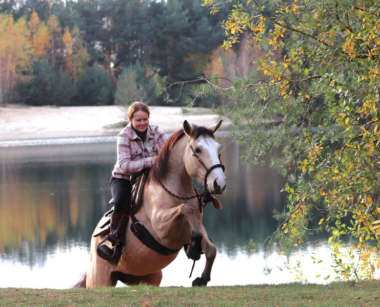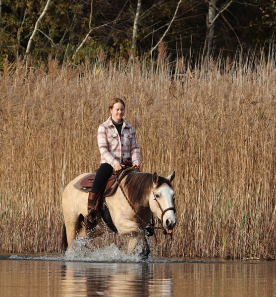 Philadelphia – eine zauberhafte junge Falbstute mit großem Herz und viel Talent Philadelphia ist eine wunderschöne, 3-jährige Falbstute mit einem aktuellen Stockmaß von aktuell ca. 1,48 m. Sie wurde an einem strahlend sonnigen Tag bei uns geboren und durfte ihre gesamte Jugend im Herdenverband auf weitläufigen Weiden verbringen – ein gesundes, artgerechtes Aufwachsen, das man ihr heute in jeder Situation anmerkt. Sie ist nicht nur optisch ein echter Hingucker, sondern beeindruckt vor allem mit ihrem liebevollen Charakter, ihrer Neugier und ihrer enormen Lernbereitschaft. Philadelphia wurde dieses Jahr behutsam und schonend im Rahmen des Natural Horsemanship angeritten. Sie versteht schnell, sucht immer die Verbindung zu ihrem Menschen und zeigt sich bereits jetzt als verlässliche junge Partnerin. Schon früh begleitete sie und sicher als Handpferd ins Gelände – Ausflüge auf Feldwegen und durch den Wald meistert sie gelassen und voller Vertrauen. Ein besonderes Talent bringt Philadelphia in der Freiarbeit mit: Sie läuft zuverlässig auf dem freien Zirkel, reagiert fein auf Körpersprache und kommt freudig auf Zuruf. Zudem beherrscht sie bereits die Ansätze des spanischen Schritts sowie das Ablegen. Diese natürliche Verspieltheit und ihr hoher „Will-to-please“ machen jede Trainingseinheit mit ihr zu etwas Besonderem. Auch unter dem Sattel zeigt sie sich angenehm und unkompliziert. Beim Aufsteigen zeigt sie eine besonders praktische Fähigkeit – sie parkt auf Kommando an der Aufstiegshilfe ein und wartet geduldig, bis man bereit ist aufzusteigen. Philadelphia ist eine Stute, die gefallen möchte und ihrem Menschen eine echte Partnerin sein will. Für ihr junges Alter bringt sie eine bemerkenswerte Ruhe und Ausgeglichenheit mit, gepaart mit Talent, Motivation und einem weichen, ehrlichen Wesen. Ich wünsche mir für sie ein Zuhause, in dem sie weiterhin liebevoll gefördert wird, wo man ihre Fähigkeiten schätzt und ihre Entwicklung mit Freude begleitet. Philadelphia wird ausschließlich in allerbeste Hände abgegeben. Auf Wunsch kann selbstverständlich eine AKU gemacht werden, und nach Absprache wird sie gerne gegen eine Spritpauschale persönlich in ihr neues Zuhause gebracht. Wenn du ein junges Pferd suchst, das durch Charakter, Talent und Herz überzeugt – dann ist Philadelphia vielleicht genau die Partnerin, die du suchst. Ihr findet uns in 49779 Oberlangen, die genaue Adresse schicke ich euch gerne nach einem persönlichen Gespräch zu. Ihr könnt mich unter der Handynummer 01624348386 erreichen. Wir nehmen uns für das Probereiten und anschauen gerne viel Zeit, damit dies in aller Ruhe und Ausführlichkeit verlaufen kann. Um sicher zu gehen, dass sich nur Leute mit ehrlichem Interesse melden und nicht wie in letzter Zeit häufiger vorgekommen, Leute als Wochenendausflug kommen, lassen wir uns diese Zeit mit einem kleinen Betrag von 50€ von euch entlohnen. Dieser wird natürlich beim Pferdekauf erstattet. Danke für Ihr Verständnis!