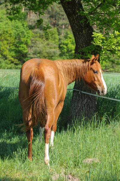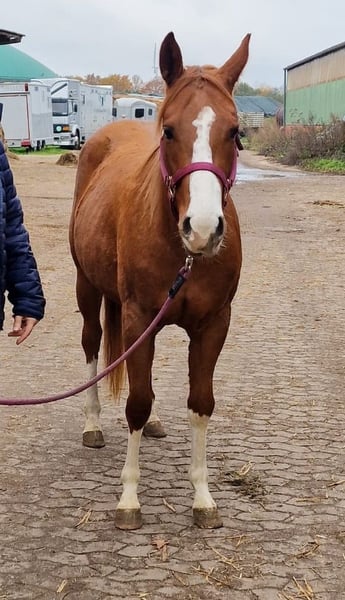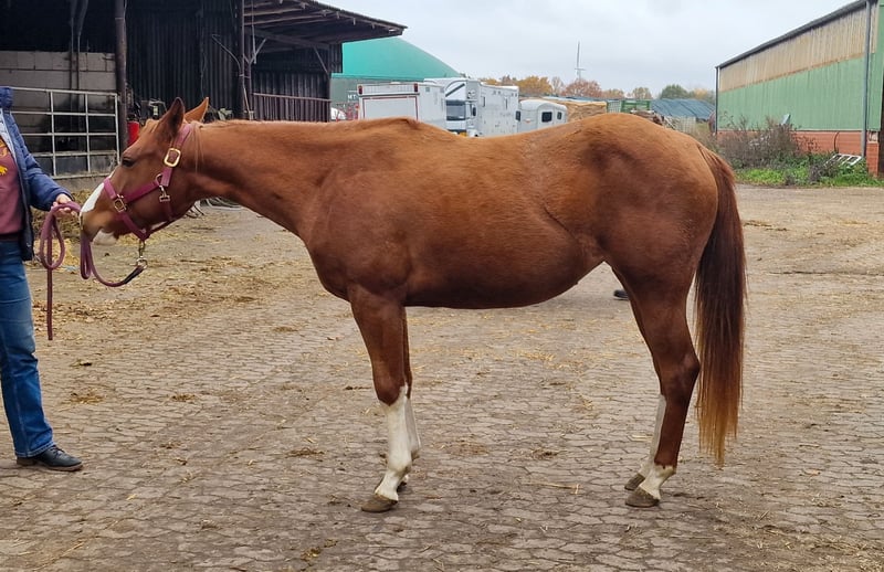 Spook N Honey - bildhübsche Jungstute, 2022 geboren mit einem geschätzten Endmaß von 150 cm, mit einem Charakter zum Dahinschmelzen. Sie kommt sofort wenn ihr Mensch auf die Weide kommt, lässt sich brav händeln und ist immer freundlich und aufgeschlossen. Die Stute durfte in Ruhe in einer kleinen Stutenherde im Offenstall aufwachsen. Kennt aber auch Box. Sie befindet sich in der Grundausbildung. 1- Jährig hat sie den Stadt&Dorf Trail gelassen gemeistert und 2 Jährig den Extrem Trail. Auch Anhängerfahren kennt sie und ist brav beim Tierarzt und Hufschmied. Honey weiß sich zu präsentieren. Eine vielseitige, liebe Partnerin, die sowohl im Sport als auch in der Freizeit begeistert wird!. Sie besitzt eine tolle Cutting/Allround Abstammung und wird mit vollen AQHA Papiere abgegeben. Eine klinische AKU wird im Rahmen des Verkaufes von der Züchterin in Auftrag gegeben. Ihr Preis steigt bei zunehmendem Ausbildungsstand.