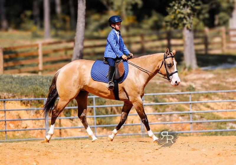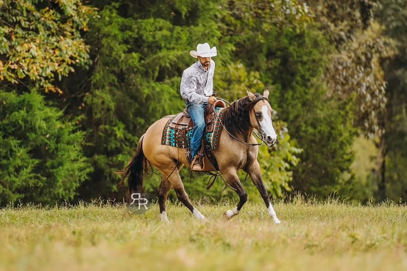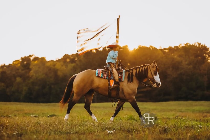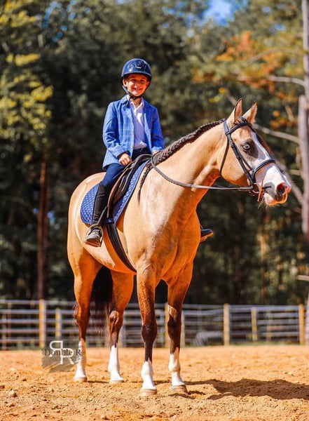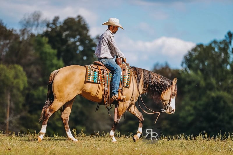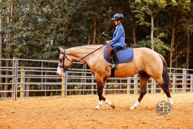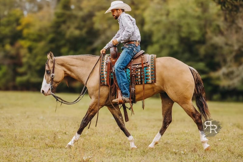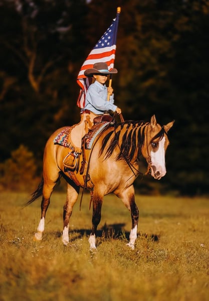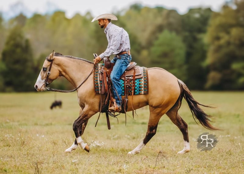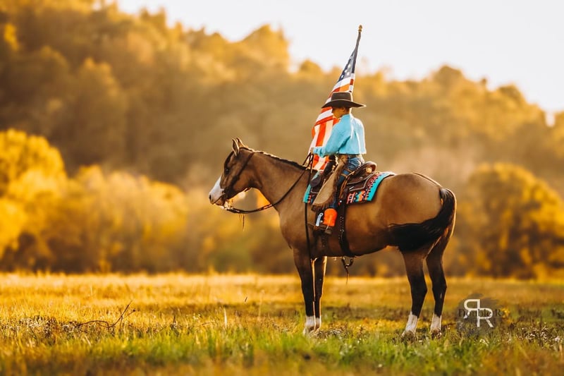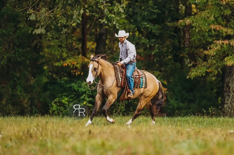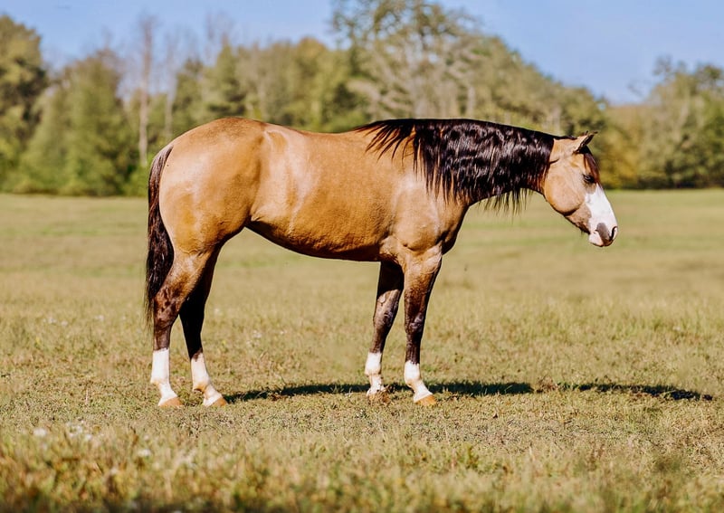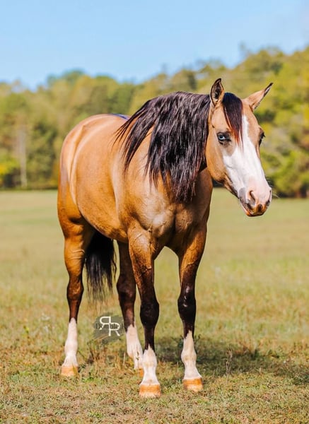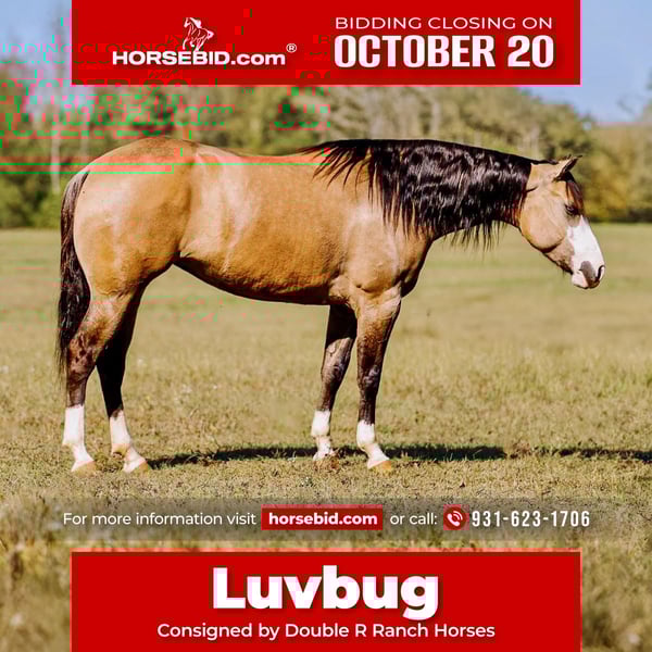 ♦️ 𝐭𝐡𝐞 𝐀𝐌𝐄𝐑𝐈𝐂𝐀𝐍 𝓕𝓪𝓵𝓵 𝓒𝓵𝓪𝓼𝓼𝓲𝓬 ♦️ Happening now thru MONDAY | OCTOBER 20th - Available EXCLUSIVELY on HorseBid's website! For more details and to register visit: www.Horsebid.com CONSIGNOR CONTACT: Double R Ranch Horses 931-623-1706 LOCATION: Lyles, TN BREED: Quarter Horse REGISTERED: No COLOR: Dun HEIGHT: 15 AGE: 4 GENDER: Mare Meet Luvbug, This stop-you-in-your-tracks gorgeous Quarter Horse mare is absolutely breathtaking, with all the chrome you could want. Her rich dun coloring, flashy white markings, and soft blue eyes give her the kind of presence that makes people stop and stare. 4 years old, and stands 15hh. She has the look everyone dreams of, paired with the perfect solid yet feminine build that will make her stand out anywhere you take her. Classy as they come, and rides around just as fancy! Beyond her beauty, Luvbug truly lives up to her name. She is one of the most affectionate, people-oriented horses you’ll meet. She is “in your pocket,” loves attention, and thrives on connection with her person. She soaks up every touch and pat, and with her sweet, willing personality, she will quickly become your best friend and trusted partner. So much personality in this gal, she will make you laugh and win you over in an instant. She has been a barn favorite, and we know you’ll fall in love just as quickly as we have! Luvbug is also safe, FUN to ride, dependable, and loaded with natural ability. She’s soft, responsive, and rides off your seat and legs with ease. She picks up her leads, has a beautiful big stop, and is naturally athletic. Whether you’re looking for a prospect to take to the show pen, a handy partner for the ranch, or a beautiful and trustworthy trail horse, she has the ability to go any direction you choose. I think she would excel in Ranch Versatility as well, or even English! She floats over jumps, and seems to really enjoy it. What a cute mover she is. She is one of those kinds of horses that are so enjoyable to watch no matter what you are doing. She’s been exposed to a wide variety of situations and always handles herself with grace and confidence. She was even part of the opening flag ceremony at the Hopkinsville Rodeo, where she carried a flag through all the lights, noise, and commotion without batting an eye. She has also been overnight camping and trail riding at Buffalo River, covering some extremely difficult trails where she kept her cool crossing the river, carefully stepping down steep and slippery mud banks, knobby tree roots and slick rocks. Even thick brush doesn’t pose to be a problem for Luvbug. She makes it look easy. It’s hard to believe she is a youngster, as she carries herself like a seasoned veteran. She is level headed, safe, and always tries her best to please her rider. Luvbug has her whole future ahead of her and all the right qualities to become someone’s once in a lifetime mare. With her looks, temperament, and talent, she is the total package!! Luvbug has had a recent PPE by Todd Co Animal Clinic- Equine Vet. She is sound, and requires no maintenance. The only thing to note is a small raised spot just above her left knee, which we had X-rayed just to be thorough. It isn’t noticeable even if you are looking for it, and our vet considers it a non-issue. If she were to go into a high-level performance career, she may eventually need a routine injection there later in life, but as a trail or ranch horse it is unlikely she would ever need any maintenance at all. We would love to welcome you out to meet her in person at our home in Middle TN. Shipping nationwide is available and we are happy to help with arrangements! Located in Lyles, TN Double R Ranch Horses 931-623-1706