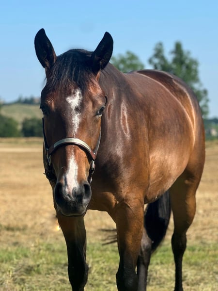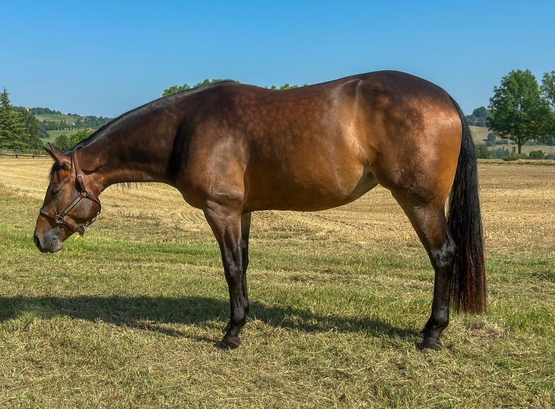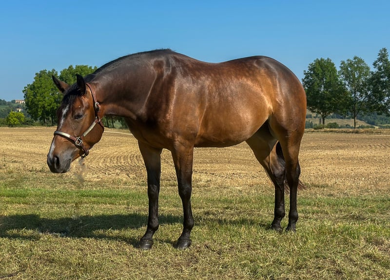 La nostra Candy è sotto la sella da poche settimane e mostra già un grande potenziale. La sua disponibilità al lavoro, la sua testa intelligente, la sua facilità di movimento e la sua natura calma. Questi sono i presupposti perfetti per un futuro roseo nel reining, ma anche per un ottimo all-rounder (equitazione in ranch, ecc.). Ha anche un pedigree eccezionale CUSTOM BLACKBERRY; guadagni in vita, $. 52.315,00. (Custom Crome 4 million dollar sire) X Henryetta Chex (Mucho Chex to Cash / Nu Chex to Cash, Million Dollar Sire. Per ulteriori informazioni o video, contattateci! La nostra caramella è sotto la sella da poche settimane e mostra già un grande potenziale. La sua disponibilità al lavoro, il suo cervello intelligente, la sua leggerezza nei movimenti e la sua natura tranquilla. Sono i presupposti perfetti per un futuro roseo nell'area del Reining, ma anche come eccellente cavaliere a tutto tondo (Ranch riding, ecc.). Genitore di CUSTOM BLACKBERRY; guadagni nell'arco della vita, $. 52.315,00. (Custom Crome 4 million dollar sire) X Henryetta Chex (Mucho Chex to Cash / Nu Chex to Cash, Million Dollar Sire. Per ulteriori informazioni o video, chiamateci!