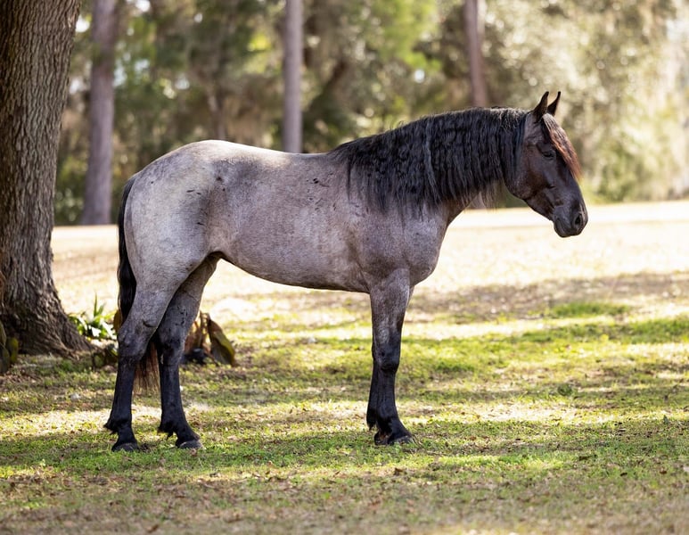 ❤️🔥𝑩𝒆 𝑴𝒊𝒏𝒆 𝐒𝐄𝐋𝐄𝐂𝐓❤️🔥 Happening now thru MONDAY | FEBRUARY 9th - Available EXCLUSIVELY on HorseBid's website! For more details and to register visit: www.Horsebid.com CONSIGNOR CONTACT: 3S Showing & Sales LLC 919-810-0760 LOCATION: Ocala FL BREED: QH/Percheron REGISTERED: No REGISTERED NAME: Bluebell COLOR: Blue Roan HEIGHT: 15.2 AGE: 4 GENDER: Mare Bluebell is a 4 year old 15.2 hand QH/Percheron cross. She is a beautiful blue roan mare with an exceptional, unflappable mind and the sweetest, most affectionate personality you could ask for! Bluebell is SAFE and FANCY. She came directly from her breeder and has been our program for the past year. She has earned what we consider “elite” status. Owning a horse of her caliber has been an absolute pleasure, and we are beyond proud to represent a horse with this much quality, heart, and character. Under English tack, Bluebell is ridden in a simple snaffle. She leg-yields beautifully, moves off the leg and has smooth balanced transitions. She turns on the haunches, picks up the canter directly from the walk, and has a perfect halt/stop with a simple “whoa.” She is adjustable, soft, brave, and incredibly willing and honest with every rider. Bluebell has been to multiple cross country facilities! She confidently goes into the water, jumps down banks AND double down banks , over coops, brush, and hedges! She is the same bold, honest horse every time. Our 8 year old rider has taken her solo around the cross country course, which truly speaks volumes about her brain and reliability. She has also been trail ridden extensively and is 100% traffic safe! Bluebell happily packed a timid adult amateur down the beach and straight into the crashing waves without hesitation. Bluebell has also completed full obstacle courses including the teeter-totter bridge, pool noodles, and more! Bluebell has been around cattle, including longhorns! She has even been ridden at night through colorful smoke bombs and around fire. In Western tack, she is just as beautiful and broke. She will stop on a dime, move out into an extended trot or settle into a slow jog, and responds beautifully to your voice. She is truly husband safe for a quiet ride. Bluebell also rides completely bridleless — walk, trot, canter, and even jump! Notice in the video that our arena has no fencing, which is a true testament to her training and rideability. She stays soft, responsive, and confident off your seat, leg, and voice alone. What truly sets Bluebell apart is her temperament. She is a total love bug! Cuddly , sweet, and a genuine people horse. She will meet you at the gate where the smallest riders can bring her in, groom, tack up, and handle her completely on their own. She stands quietly and patiently for every step. Bluebell has safely carried riders from 8 to 77 years old and is consistently my go to horse when I need to pack a child or timid adult amateur. She is kind, honest, confidence building, and trustworthy in every situation we put her in. In the barn, she is just as wonderful. Easy to load, tie, cross tie and catch. Bluebell is happy inside, turned out alone or in a mixed herd! She is barefoot & has absolutely no vices. She is an easy keeper. To sum it up, Bluebell is a thoroughly tested, family-safe horse that is also talented and trained enough for the show ring! She is suitable for the walk trot rider, yet fancy and capable enough to jump cross country, go down centerline, or step right into the show jump ring!! Family safe, kid safe, amateur safe AND beautiful with all the fun buttons. And let’s not forget — she is a head turning blue roan with presence and beauty to match her talent and brain. With Bluebell, you truly can have looks, training, versatility, and temperament. There is no reason to compromise! If you’d like to meet Bluebell, please reach out today. We have an in-house shipper who can easily arrange safe, reliable transportation anywhere in the country. Bluebell has been a very special part of our program and our family, and while we may only be a small part of her story, we are truly hoping to find her forever family.