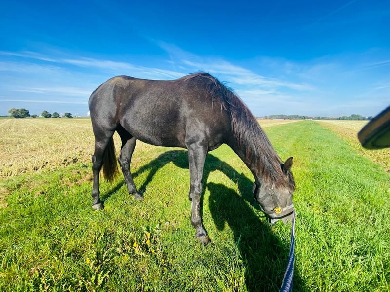 For sale is a promising Quarter Mix mare (born April 2022) with a height of 16.0 hh. This charming young mare impresses with her quick learning ability and motivation during daily training sessions. She has a solid foundation in basic groundwork and has been carefully introduced to desensitization and calmness training. She is familiar with saddle, vaulting surcingle, and rider weight, which pose no problem. She also knows everyday farm life, including dogs, tractors, and all the usual surroundings. Her first riding experiences have already taken place in the indoor arena. Currently, she lives in a mixed open stable herd and is well socialized. We also wish for her future to be in a species-appropriate environment—ideally continuing in an open stable setting. Health: dewormed, vaccinated, barefoot, eczema-free, regularly trimmed by a farrier (her biggest fan), and osteopathically treated. She is not being sold due to lack of time or urgent circumstances. As I have completed training as a riding therapist, I am now looking for an older, more experienced horse for my professional work. We are seeking a loving, consistent home for this mare, ideally with some young horse experience.