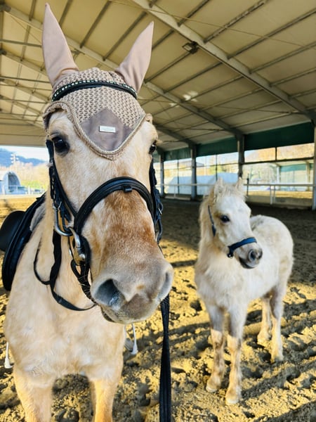 🍀FOR SALE 🍀 ⭐️ESSENZA D'ORO & il suo piccolo MANGO⭐️ Non sono solo due cavalli. Sono un legame, una storia iniziata insieme. ESSENZA D'oro, 4 anni, 1.45/1.48 al garrese. Bravissima a sella, CAVALLA FREDDA! (ha avuto il puledro a 3 anni), è una cavalla buonissima, dal carattere dolce e disponibile. È sanissima, e in ordine con documenti (ha documenti italiani APA, NON HA IL CERTIFICATO AMERICANO) e coggin test. Il suo puledro Mango, 2 mesi, è già super bravo: si lascia spazzolare, coccolare e gestire con serenità. È curioso, equilibrato e molto affettuoso. Vengono venduti esclusivamente insieme. Cerchiamo per loro una famiglia consapevole, presente e capace di donare amore e stabilità, perché meritano una casa vera. No curiosi, no affaristi, no perditempo. Solo persone seriamente interessate e responsabili. POSSIBILITÀ DI TRASPORTO IN TUTTA ITALIA Zona Bergamo Per ulteriori informazioni 3917059140. (NON RISPONDO A MESSAGGI)