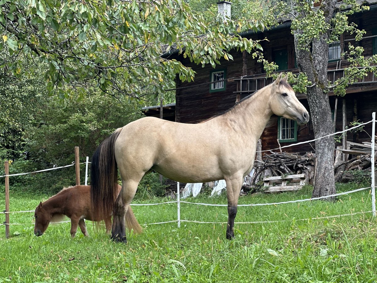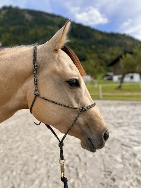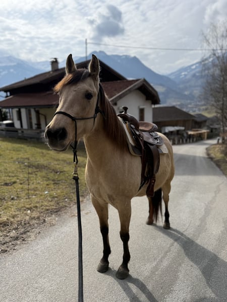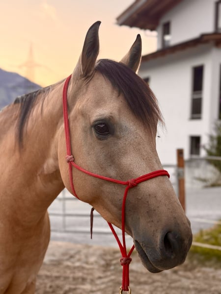 Schweren Herzens muss ich mich leider von meiner geliebten Quarter Stute trennen! Rosé liebevoll „Rosi“ genannt wird im Juni 5 Jahre alt. Sie ist seit 4 Jahren in meinem Besitz und wurde seitdem von mir (teilweise auch Unterstützung einer Trainerin) vom Boden aus trainiert. Dabei zeigte sich schon von klein auf, dass sie einen sehr hohen Bewegungsdrang hat und auch gearbeitet werden will. Sie ist immer die erste die am Zaun steht und regelrecht wartet, bis man etwas mit ihr macht. Charakterlich ist sie sehr liebevoll und intelligent aber dennoch auch immer für eine Diskussion bereit und fragt gerne mal nach 😅 Rosi stand bei mir Zuhause 24/7 im Offenstall mit 2 anderen Stuten, dort war sie eher rangmittig unterwegs. Sie befindet sich seit letztem Jahr in Profi Beritt, dort steht sie zur Zeit in einer Box. Für ihr zukünftiges Zuhause kommt für mich aber ausschließlich ein Offenstall oder Box mit täglichem Weidegang in Frage, da sie es von klein auf so kennt und dementsprechend auch ausgeglichener ist. Sie wurde unter dem Sattel erst spät gestartet, weil mir das persönlich sehr wichtig war. Unter dem Reiter zeigt sie sich sehr mutig und intelligent. Rosi benötigt aber aufgrund ihres Alters einen sehr selbstbewussten, geübten Reiter mit einer feinen Hand der ihr die nötige Sicherheit beim Reiten vermittelt. Sie war auch schon öfters alleine im Gelände unterwegs, was sie brav gemeistert hat mit entsprechender Sicherheit des Reiters. Leider harmoniert es bei uns nicht und ich kann ihr nicht die Sicherheit geben die sie vom Sattel aus benötigt. Deshalb muss ich mich, so schwer es mir auch fällt, von meiner Rosi trennen. Mit dem richtigen Menschen an ihrer Seite geht sie aber mit einem durch dick und dünn. Videos auf Anfrage Preis VHB Bei Fragen könnt ihr euch sehr gerne melden!