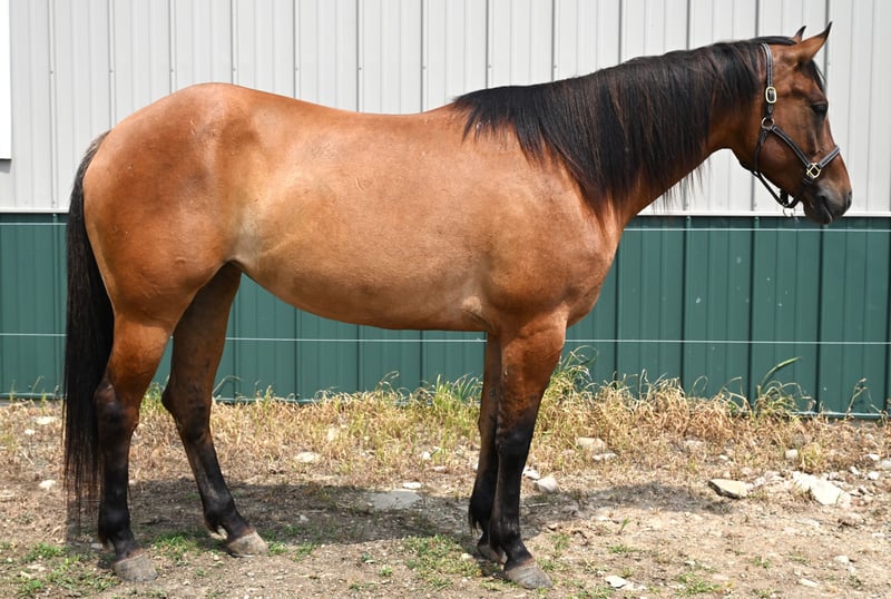 ♦️ 𝐭𝐡𝐞 𝐒𝐞𝐩𝐭𝐞𝐦𝐛𝐞𝐫 𝑺𝒆𝒍𝒆𝒄𝒕 ♦️ Happening now thru MONDAY | SEPTEMBER 8th - Available EXCLUSIVELY on HorseBid's website! For more details and to register visit: www.Horsebid.com CONSIGNOR CONTACT: Wolcott’s Versatility Horses and Training 585-734-0169 LOCATION: Warsaw, NY BREED: AQHA REGISTERED: Yes REGISTERED NAME: JAK MS BLUE SNIP 634 COLOR: Dun HEIGHT: 15.2 AGE: 5 GENDER: Mare JAK MS BLUE SNIP 634 “Ivy” 2020 AQHA Dun Mare that stands at 15.2hh. She’s the kind of horse that’s easy to fall in love with, beautiful, well-built, and incredibly versatile. We’ve owned Ivy since she was a yearling, and she’s been a joy to bring along. She’s smart, willing, and picks up new things quickly. She's ready and able, whether you’re hitting the trails, working obstacles, riding in parades, competition with drill team, or heading to a show. Ivy has a smooth, natural gait, walks on a loose rein, and carries a slow, collected lope that’s an absolute dream to ride. She neck reins, is soft in the face and throughout her body. She’s been extensively ridden on trails, been on camping trips, competed in obstacle courses all over NY, and competed in a jumping derby. She has been shown by 4-H youth, in showmanship, western pleasure, English on the rail and over fences, drill team, and gymkhana games. She even qualified for the state fair after a strong showing at the county level. Ivy is confident, sure-footed, traffic-safe, dog-safe, and patient. She loads easily, stands quietly, and handles new environments like a pro. She’s the total package! She has no vices and is happy living inside the barn or out on the pasture. Finding a young horse with this kind of brain and experience is rare. Whether you're looking for a solid show partner or a dependable trail mount, Ivy won’t disappoint. Ivy is located in Warsaw, NY.