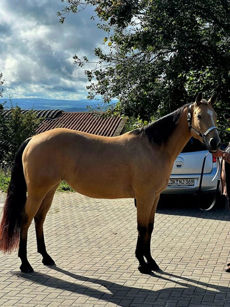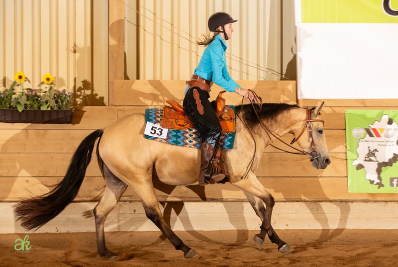 Authentic Quarter Horse mare available due to a change in riding discipline. The mare is well-schooled at basic level, with last year’s competition record including two events and four placings in young horse classes and ranch riding for young horses. She was Reserve Champion at the DQHA Breed Show with a score of 82.12. Pedigree analysis of her parents and IMM/MYH1 test results are available. An excellent horse for a young rider. Very calm and brave, even in the terrain. Farrier and veterinarian visits are no problem. Ultrasound examination can be arranged if desired. We are seeking a good home; this is not a desperate sale. A trial ride fee of €35 applies. Videos and additional photos available upon request.